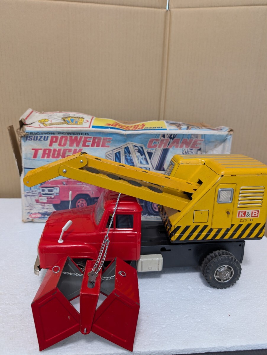 昭和ブリキ 昭和当時物 輸出用? AOSHIN アオシン ISUZU POWERECRANETRUKS いすゞパワークレーントラック TX 丸目4灯式 いすゞボンネットトラックです。