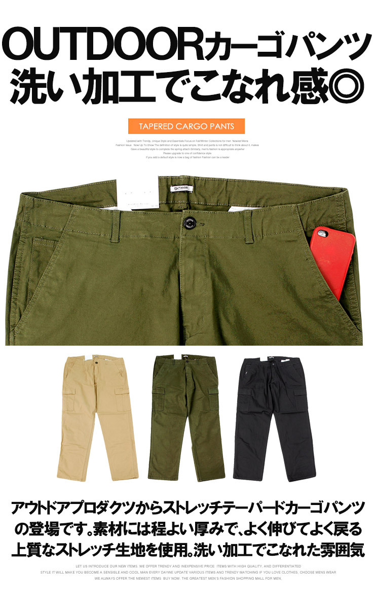| 商品説明 | アウトドアプロダクツからストレッチテーパードカーゴパンツの登場です。 |