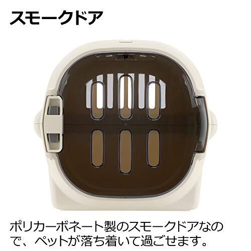 ・ブラウン S 6120550・本体サイズ (幅X奥行X高さ) :32.5×47.5×29.5cm・本体重量:1.4kg・原産国:日本商品紹介 お外でキャリー、お家でハウス ペットを守る丈夫なハードタイプのキャリーです。 ポリカーボネート製のスモークドアなので、ペットが落ち着いて過ごせます。 両手で持てるワイドハンドルなので、女性でも安定して持ち運びができます。 ドアは右開き、左開きのどちらかにも付け替えできます。 ドアを取り外して、普段からハウスとして慣らしておくことで、来客時や災害時の移動にも安心です。 自動車のシートベルトで固定して、安全にドライブできます。 プラスチック製なので、お手入れ簡単です。 原材料・成分 本体・ハンドル・ドアロックケース・ベルト取付部:ポリプロピレン、 バックル・バックル軸・ドアロック:ABS樹脂、 ドア:ポリカーボネート、バネ:ステンレス鋼