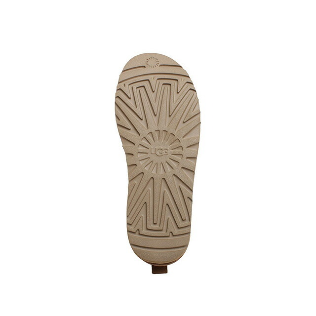 素材 | アッパー:17mmのツインフェイスシープスキン(撥水加工)、ライニング:17mmのシープスキン、インソール:17mmのUGGplush、アウトソール:成長の早い再生可能なサトウキビ由来のEVA素材 または Treadlite by UGG、後部にプルタブ、スエードのヒールカウンター |