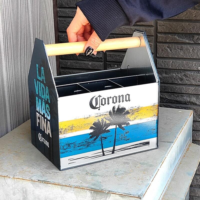 商品説明 | 「CORONA ストレージキャディー Ver.2」 CORONAデザインのストレージキャディーです。 コロナらしい爽やかなデザインがおしゃれ♪ 持ち運びに便利な木製のハンドルが付いており、アウトドアやBBQ、ガーデニング用具の収納にも最適です。 内部には複数の仕切りがあり、小物入れとしても機能的です。 文房具やキッチンツール、アクセサリーなど、さまざまなアイテムを整理して収納することができます。 お部屋やショップのインテリアとしてはもちろん、プレゼントにもいかがでしょうか? |