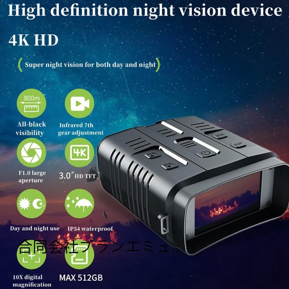 4K HD 双眼鏡 ナイトビジョン 赤外線 2160P HD アウトドア キャンプ 狩猟 ナイトビジョン ゴーグル 昼夜両用 800M 簡単取り付け