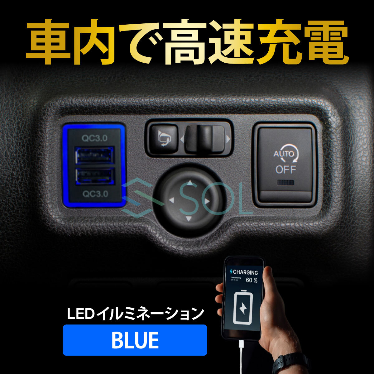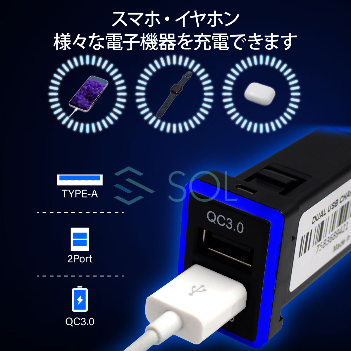 USBポート ノア トヨタ 汎用 TYPE-A 2ポート 急速充電 増設 QC3.0 LED 青 ブルー 充電 サービスホール タイプA カプラー スマホ