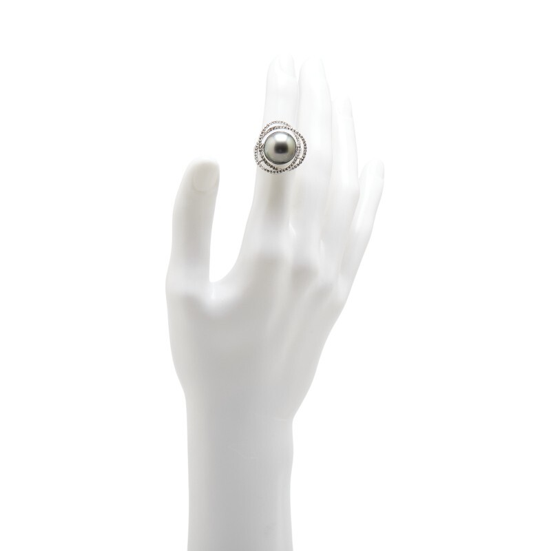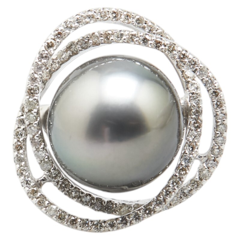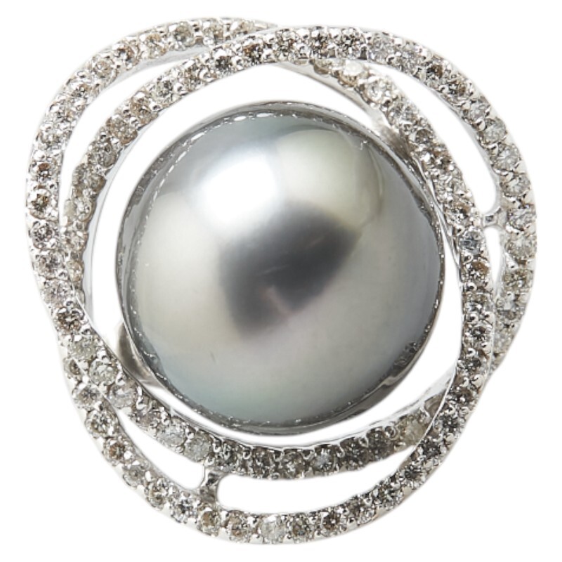 K18WG ホワイトゴールド 黒蝶真珠13.8mm ダイヤ0.75ct リング 指輪 レディース 10.5号 中古