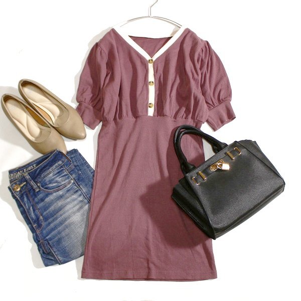 美品 GRL グレイル 可愛いリブストレッチ チュニック S 春 夏 25A05