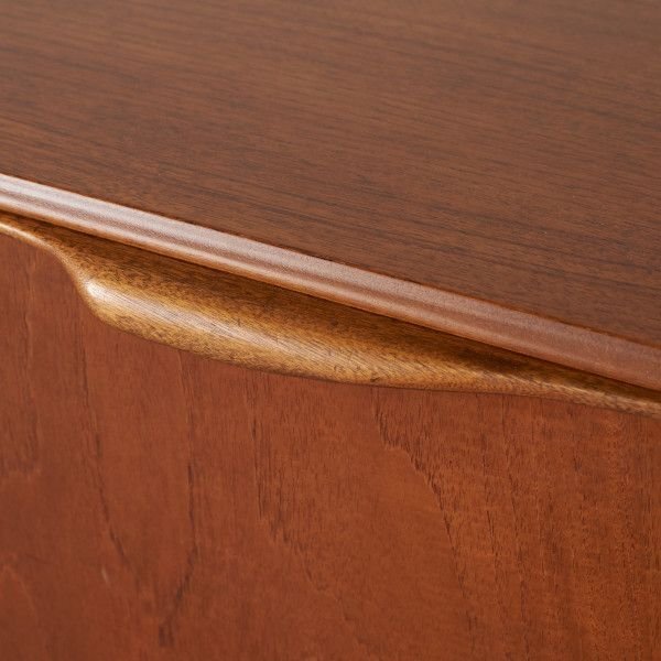 ポッテリと削り出された取手やなめらかな脚フレームの意匠など、ハイクオリティーなディテールを備えたサイドボード。シンプルなフォルムながら上質な存在感をたたえる一品です。