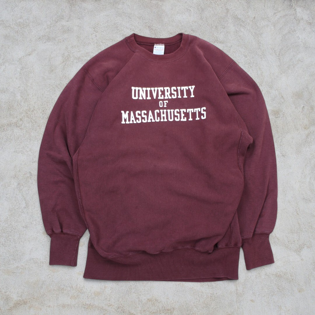 人気が高まってきてる3桁プリントがフロントに施されたリバースウィーブ。雰囲気抜群の色落ち感が印象的なワインレッドカラーのクルーネックです。