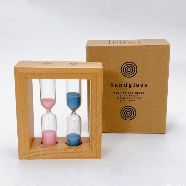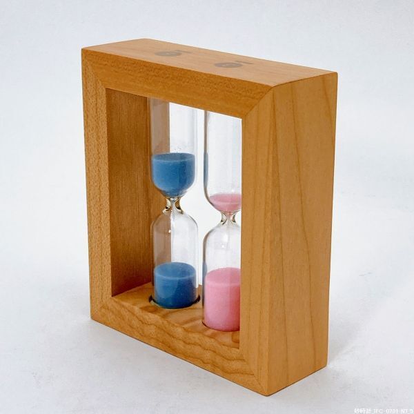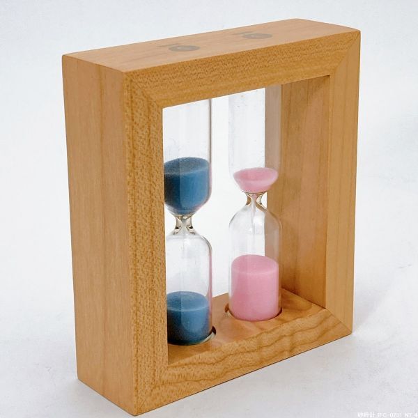 【未使用/送料230円】 砂時計 3分 5分 かわいい おしゃれ インテリア 置き物 癒し カップ麺 木製 ガラス ピンク ブルー 50613-1 1/2