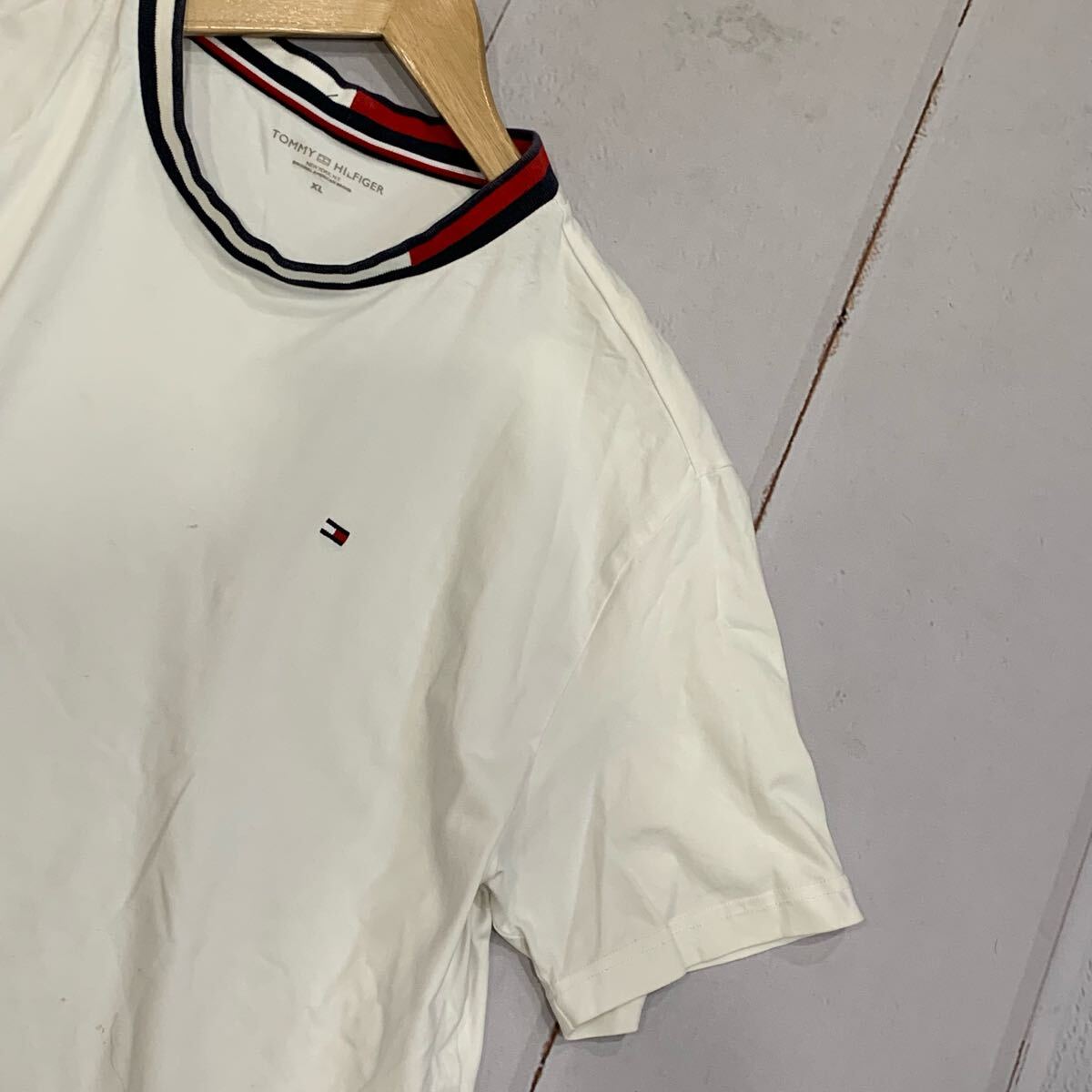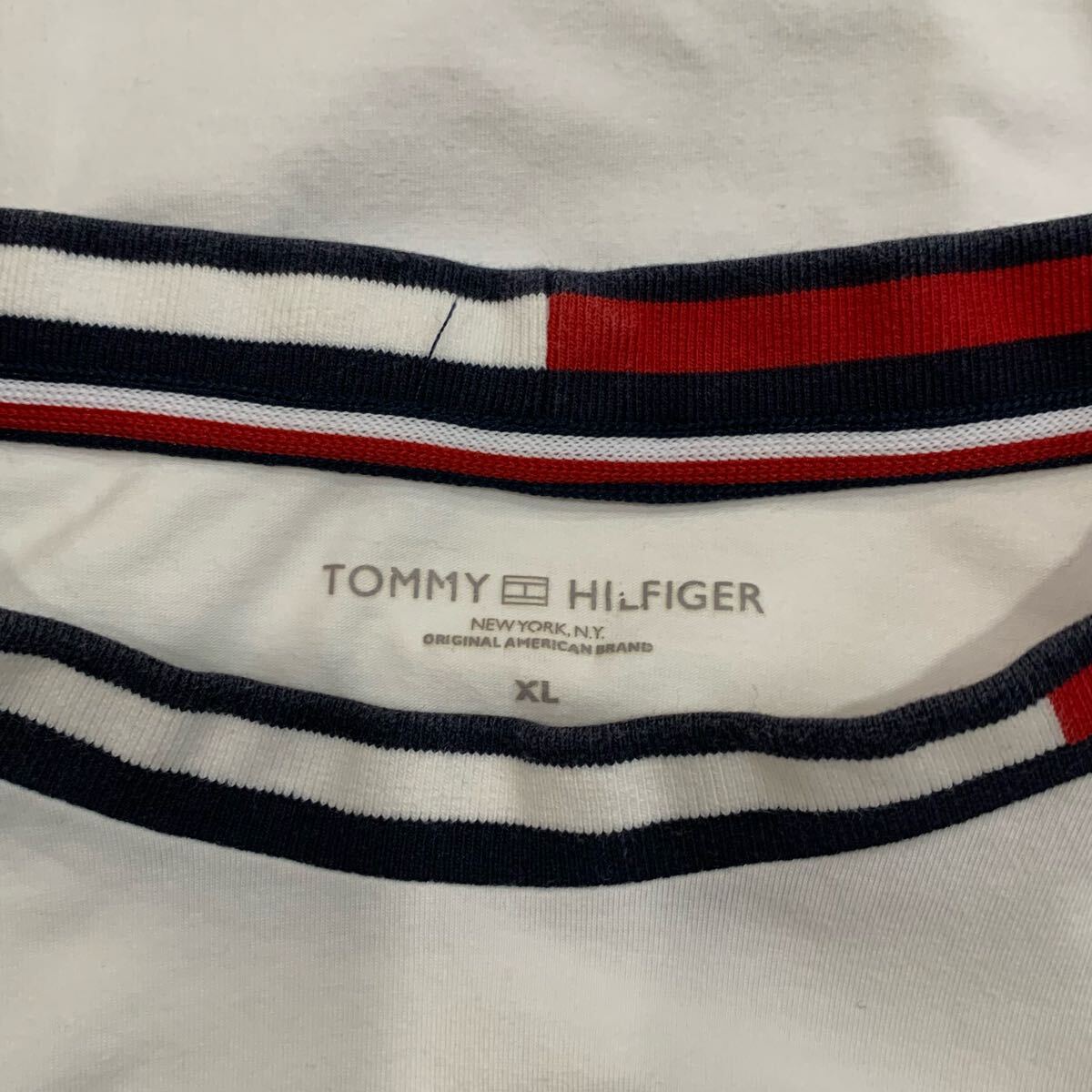 E ▼ 人気モデル!! '都会のカジュアルウェア' TOMMY HILFIGER トミーヒルフィガー 半袖 ロゴ Tシャツ size:XL メンズ トップス 古着