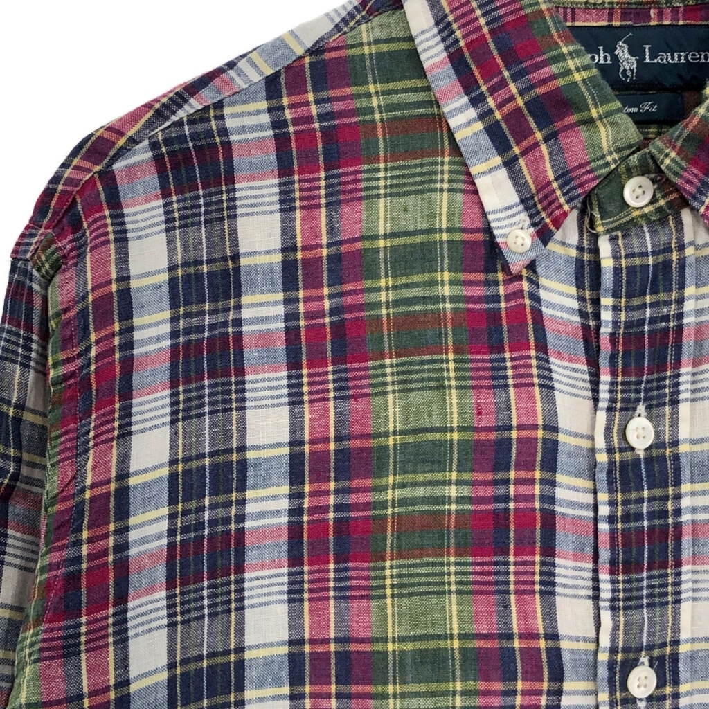 [商品管理番号] U5036 [ブランド] Polo by Ralph Lauren/ポロ ラルフローレン [サイズ] L [実寸サイズ] 肩幅:約47cm 着丈:約81cm 身幅:約61cm 袖丈:約63cm [主な素材] 表地 : 麻・リネン [色] マルチカラー [仕様] チェック [状態] キズ:胸 | |||
