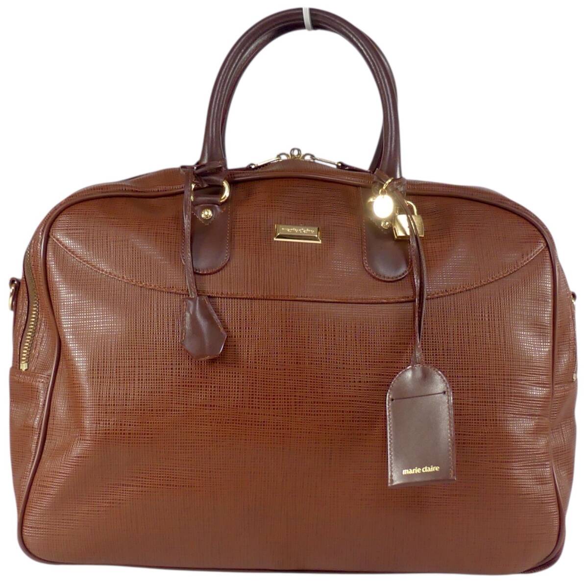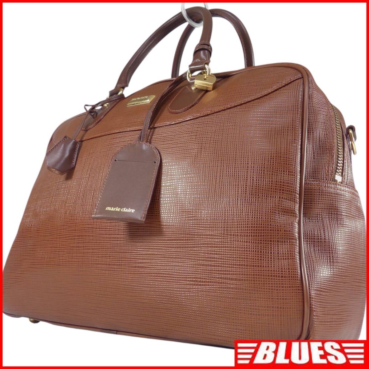 即決★marie claire★オールレザーボストンバッグ マリクレール 茶 本革 トラベルバッグ 本皮 ショルダーバッグ 旅行 カバン 出張 鍵付き