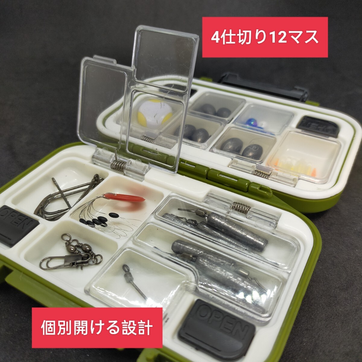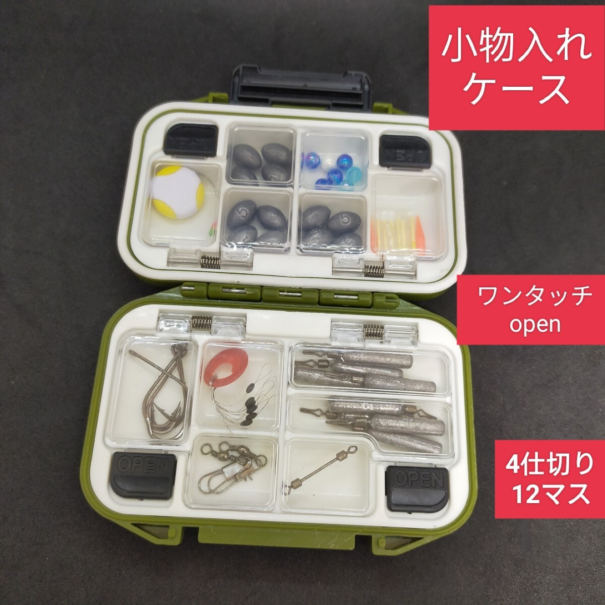 - 小物入れ、フックケース、ガン玉入れ、ミニタックルボックスとして使用可能