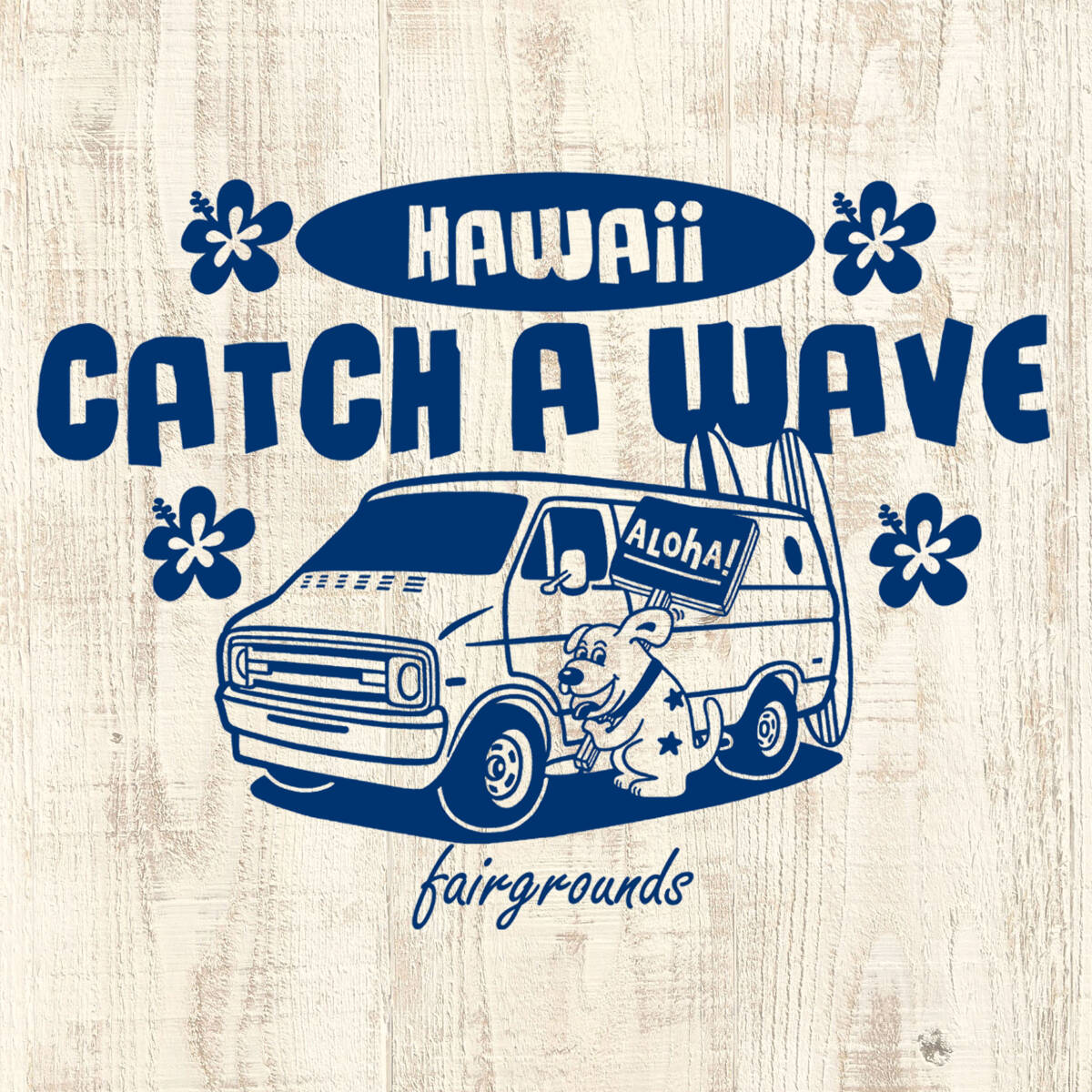 ■CATCH A WAVE Tシャツ■Lサイズ(ホワイトxブルー) アメ車 ダッジバン サーフィン サ-フ ハワイ DODGE HAWAII