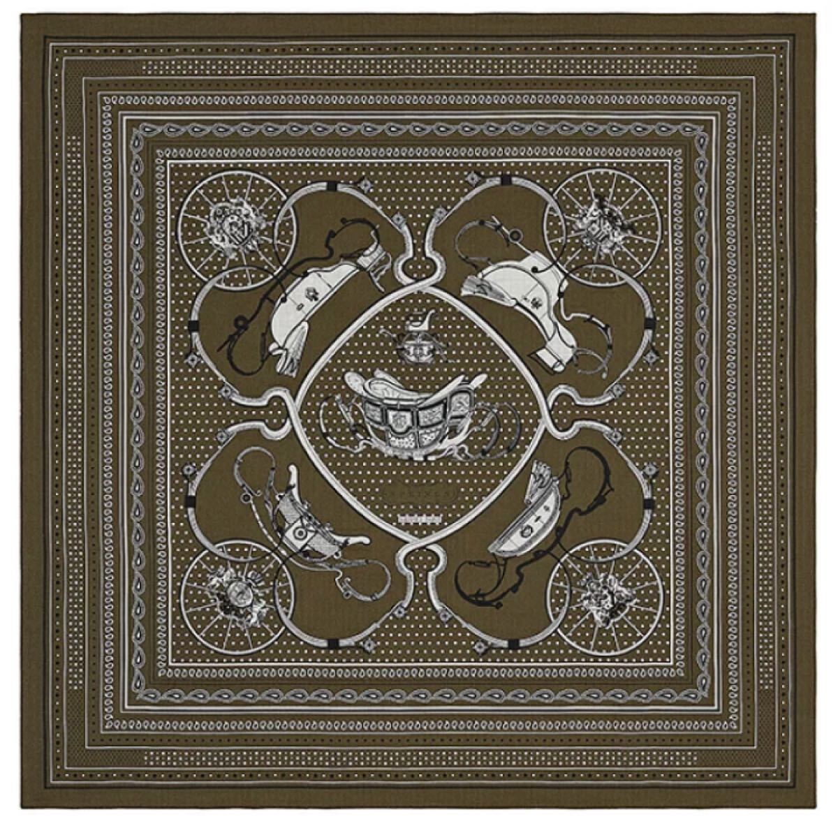 即決★希少柄!エルメス ストール カシシル カレジェアン スプリングス バンダナ カシミヤシルク 大判スカーフ カレジュアン カレ140