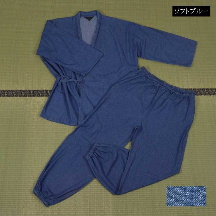 綿100% デニム 作務衣 ソフトブルー Sサイズ★40096-1-S★新品 男性 おしゃれ 普段着 陶芸家 書道 夏祭 パジャマ さむえ 和装 おすすめ Z2