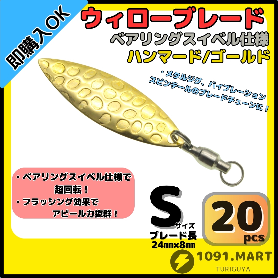 【送料無料】ウィローブレード ハンマード/ゴールドSサイズ20個セット ボールベアリングスイベル付きスピンテールブレードブレードチューン