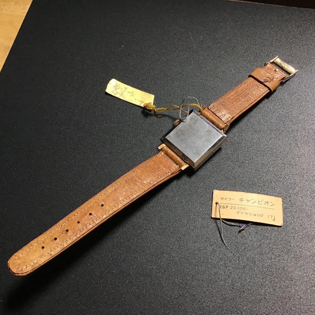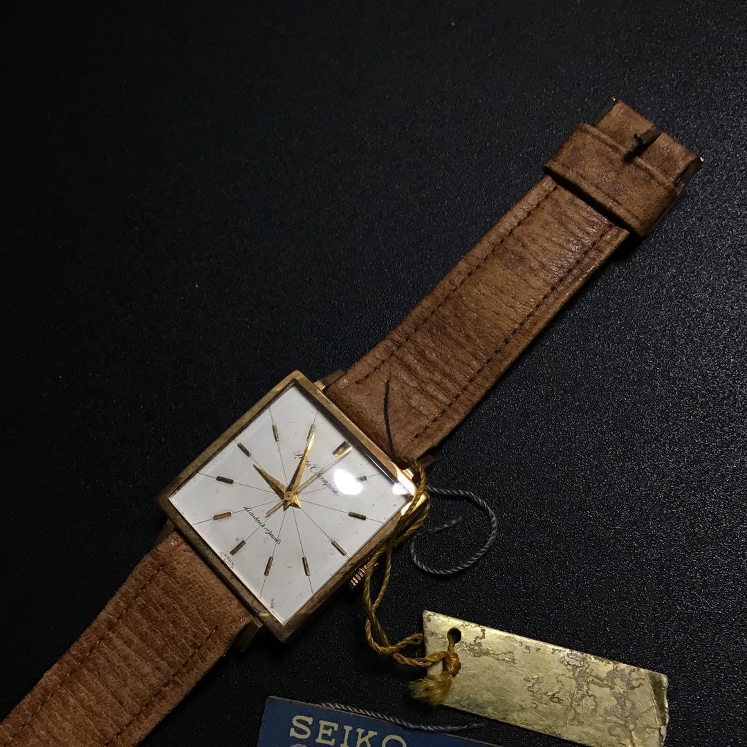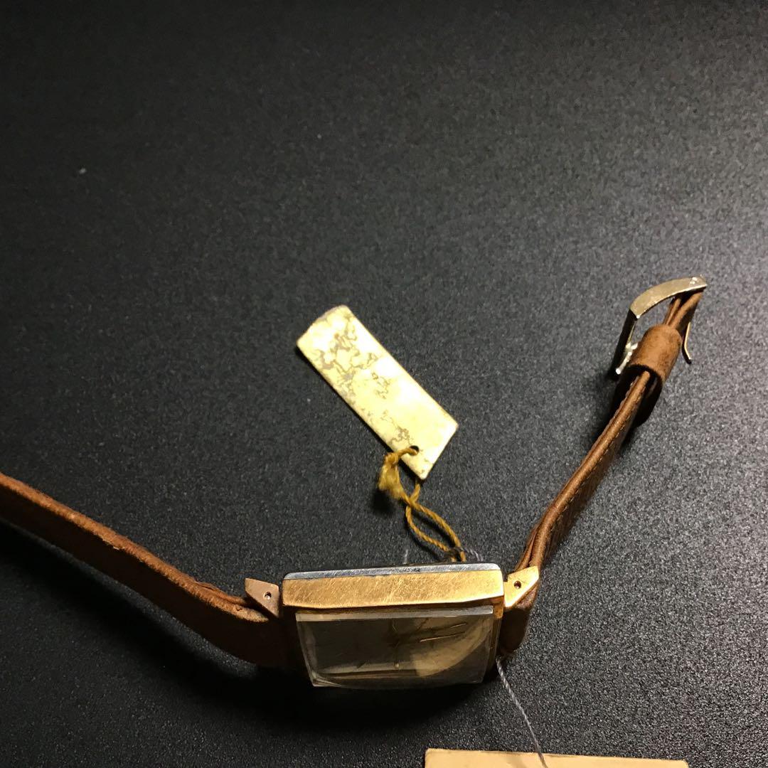 昭和の腕時計屋さんの整理品です 当時の売れ残りが沢山出てきましたので順次出品します 手巻き時計になります。 完全デットストック品の為、未使用品になります 50年以上保管されていた物ですので経年による劣化は見られます 文字盤に汚れが見られます 未使用の為ベルトはしっかりしておりますが、相当年数が経過しておりますので強度は不明です 少しネジを巻いて動かしてみましたが元気よく動いております デットストック品の為傷はほぼありませんが年数による金属のくすみは御座います。