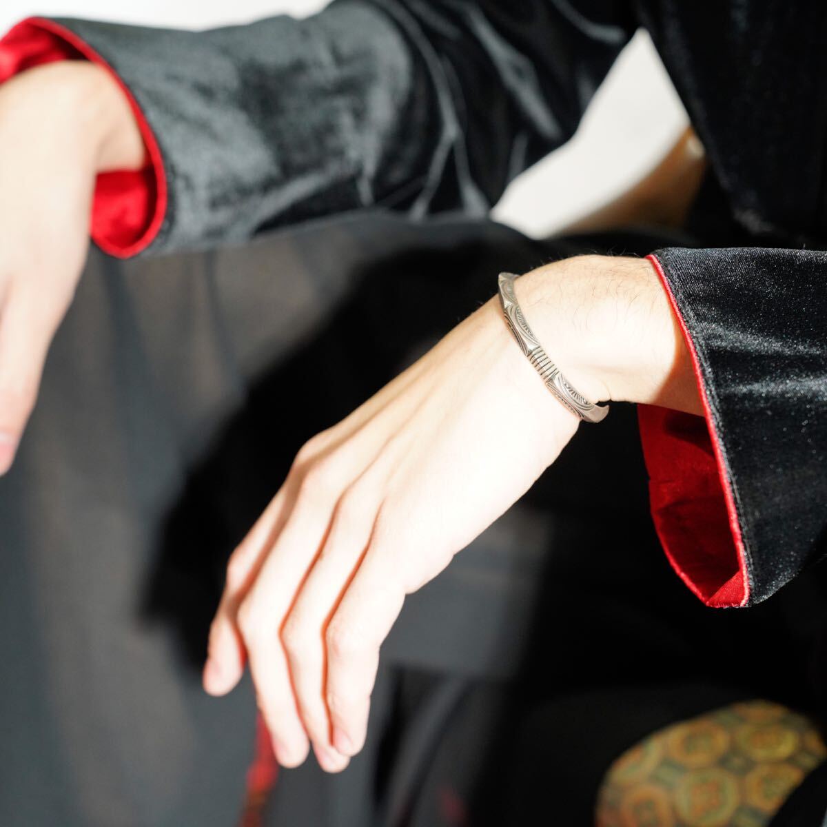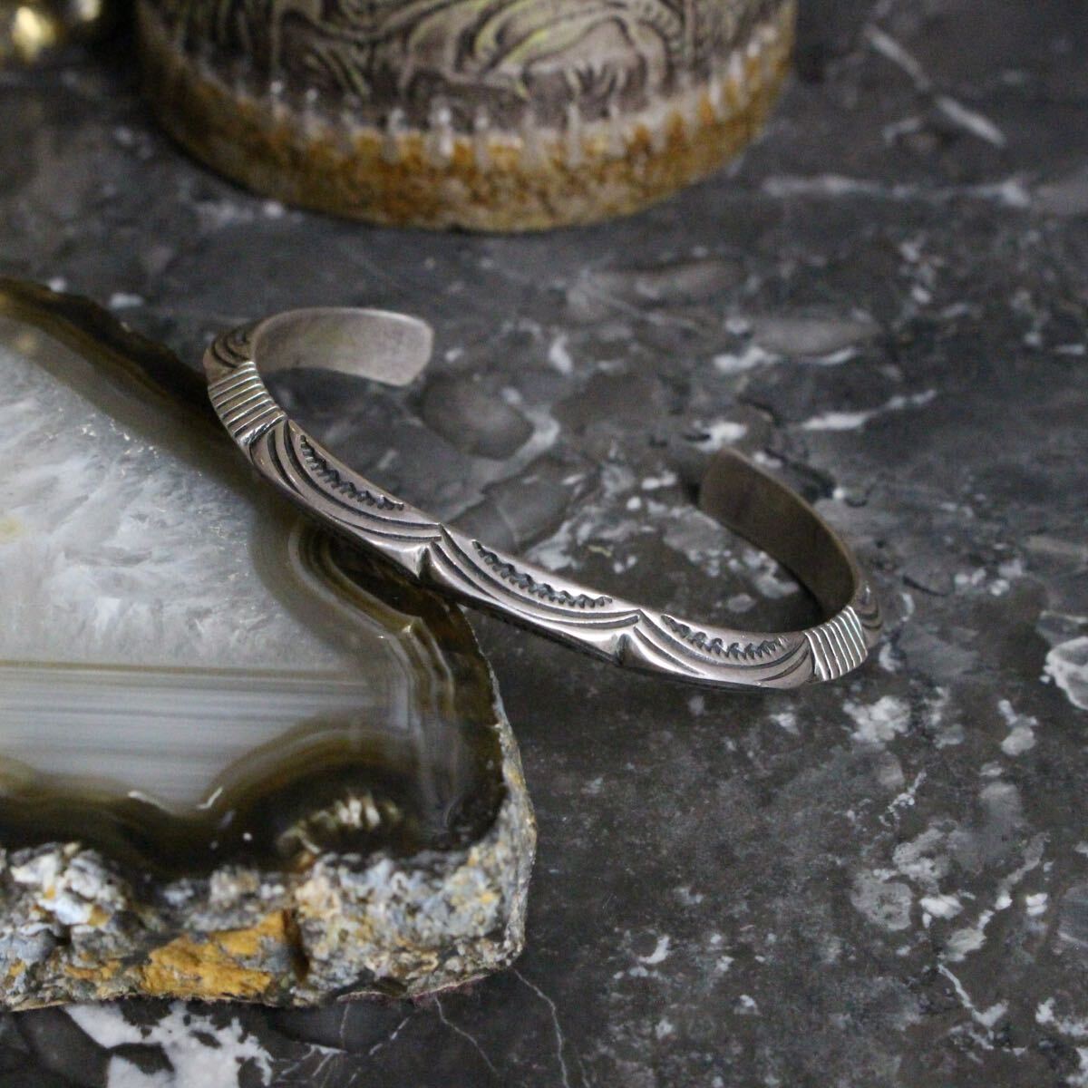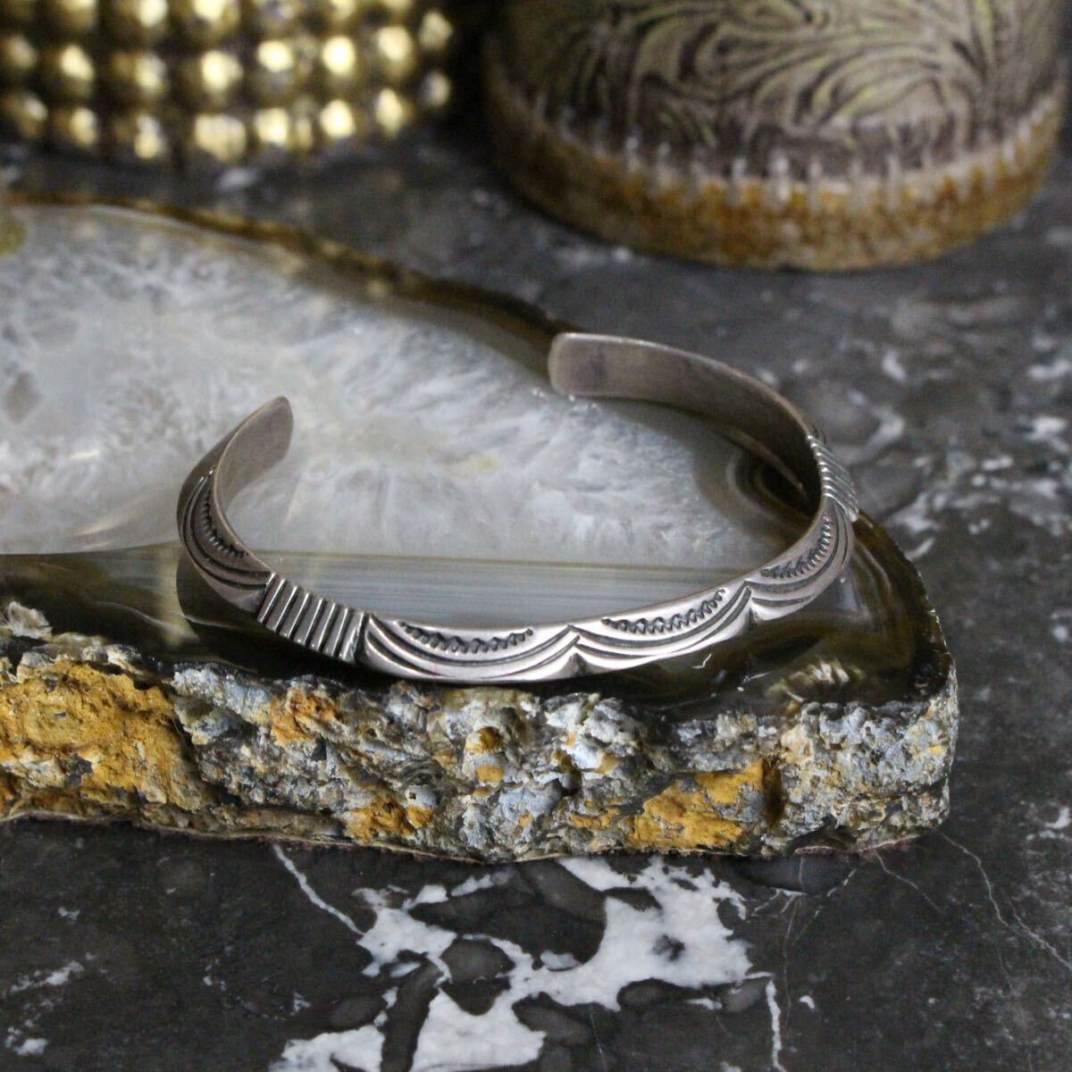 USA VINTAGE NAVAJO Geneva&Kevin Ramone INDIAN JEWELRY STAMPWORK DESIGN SILVER BANGLE/アメリカ古着ナバホ族インディアンジュエリースタンプワークデザインシルバーバングル