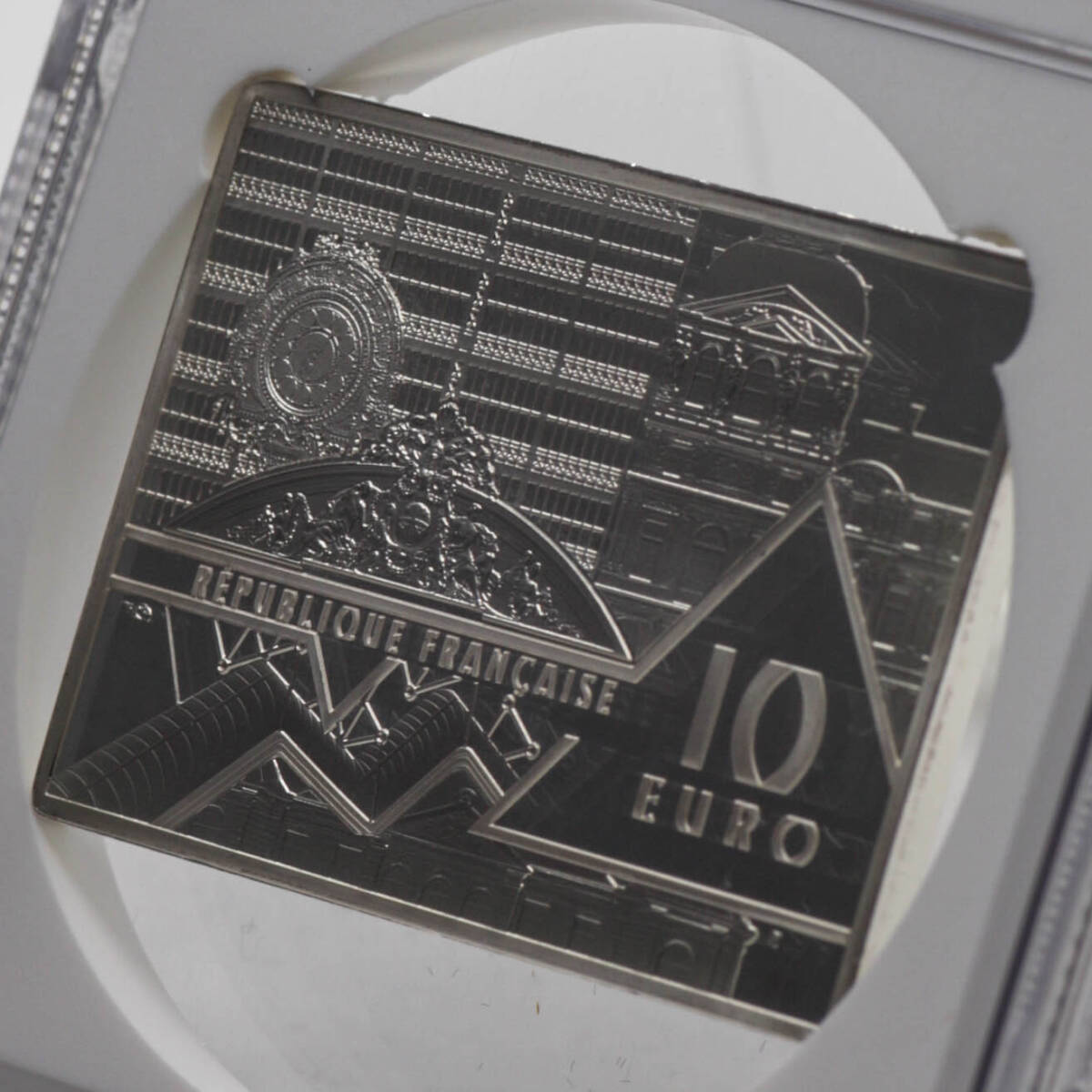 表面は葛飾北斎の「神奈川沖浪裏」、裏面にはルーブル美術館の意匠という、まさに美術愛に溢れたコインです。