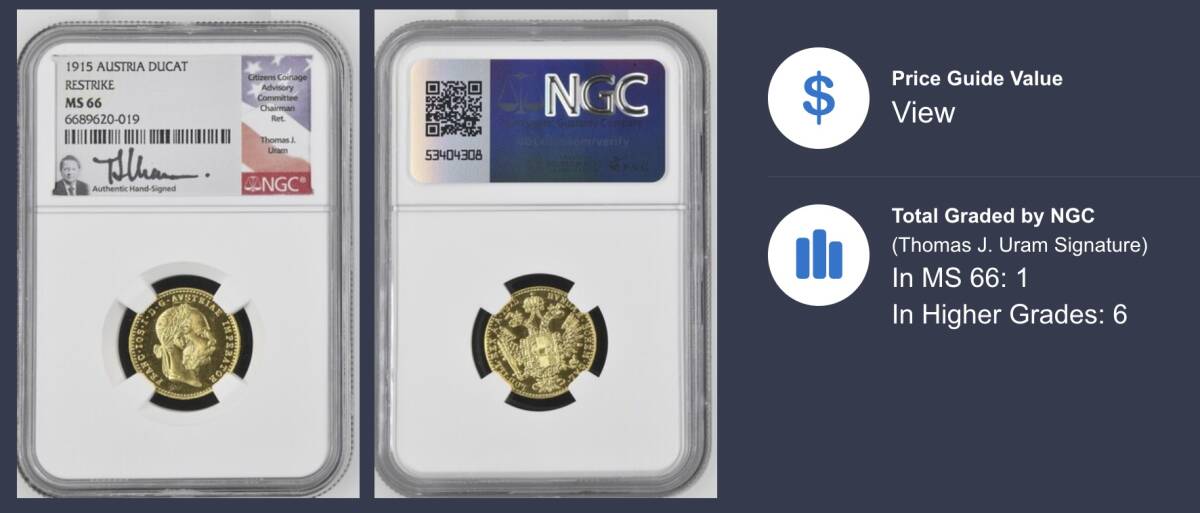 ・NGC公式記録にて、MS66 × トーマス・ウラムサイン付きは「世界で1枚のみ」