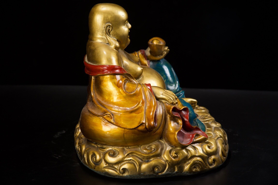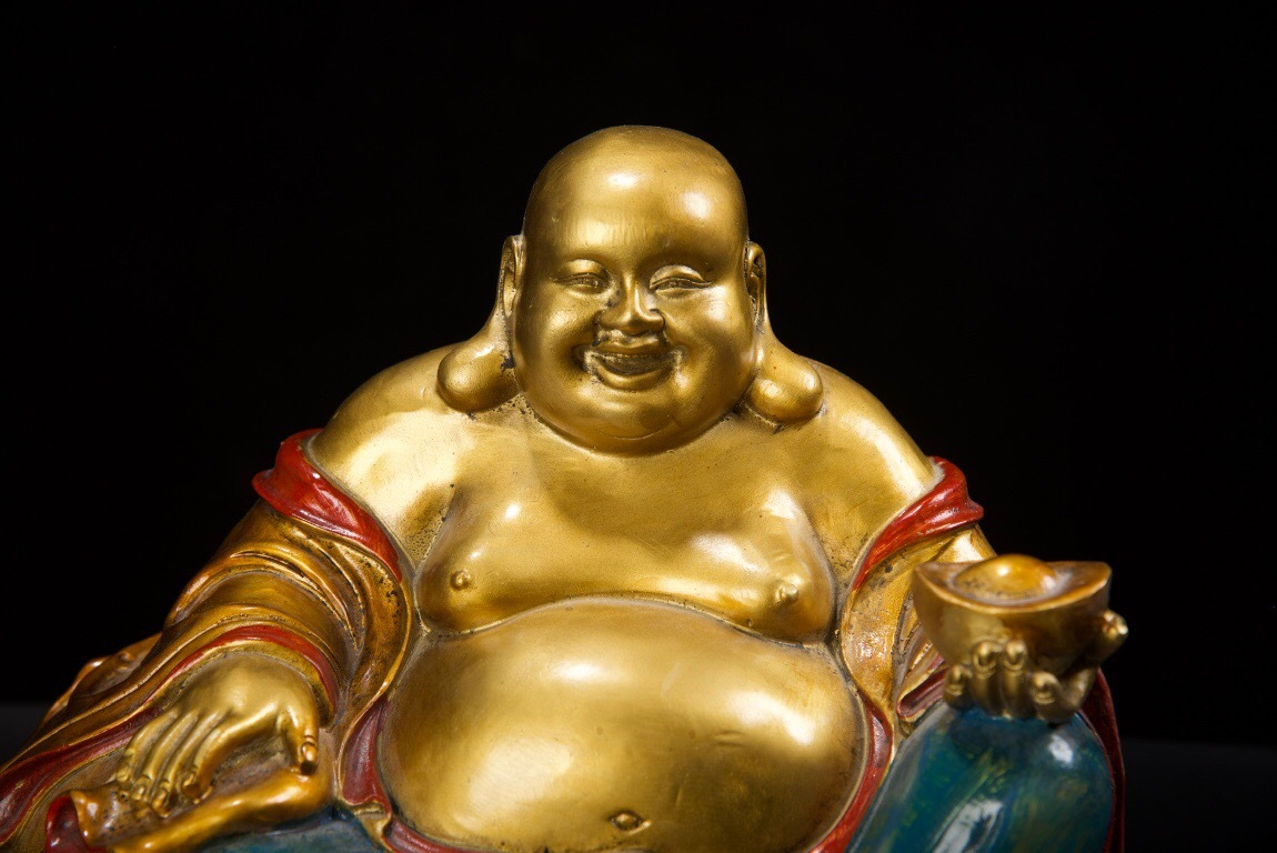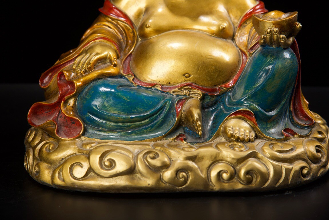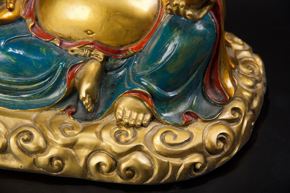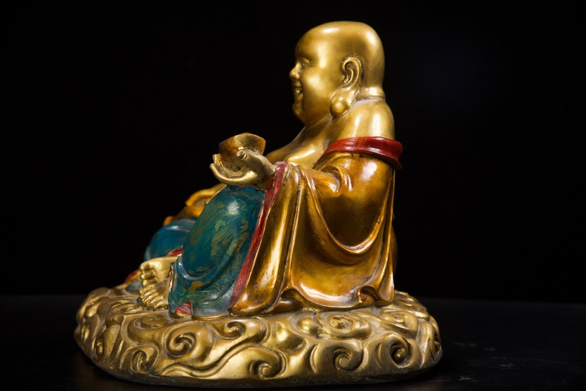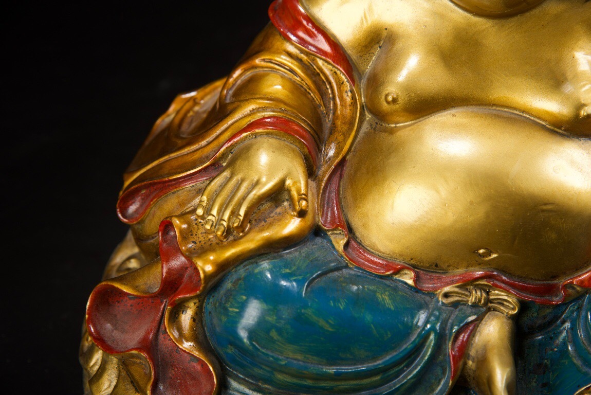 【超珍館蔵】銅製 金鍍 彩繪 彌勒仏 仏像 宗教 仏教古美術 供養品 古賞物 古董品 古美術品 時代物 旧家蔵出 稀少珍蔵品