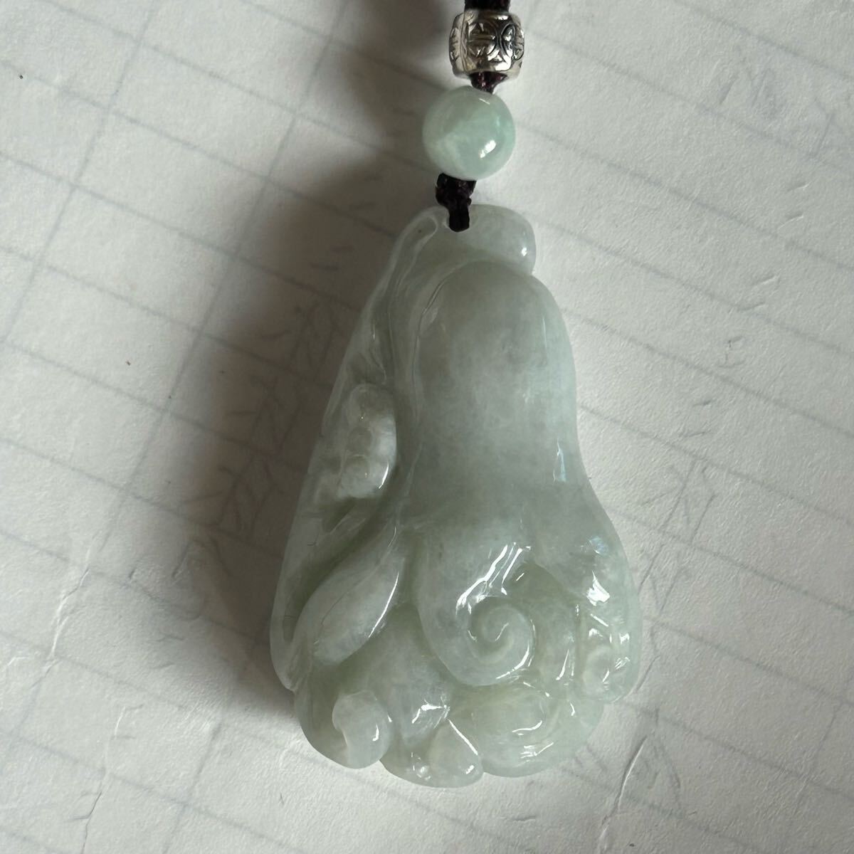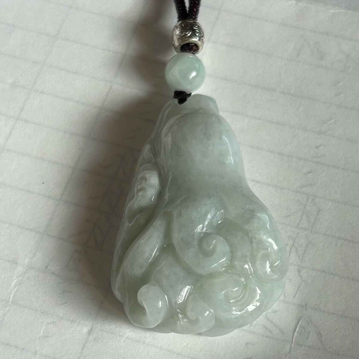 天然翡翠A貨。ペンダント28×45mm 厚さ:12.3mm。両面彫刻 男女兼用 F