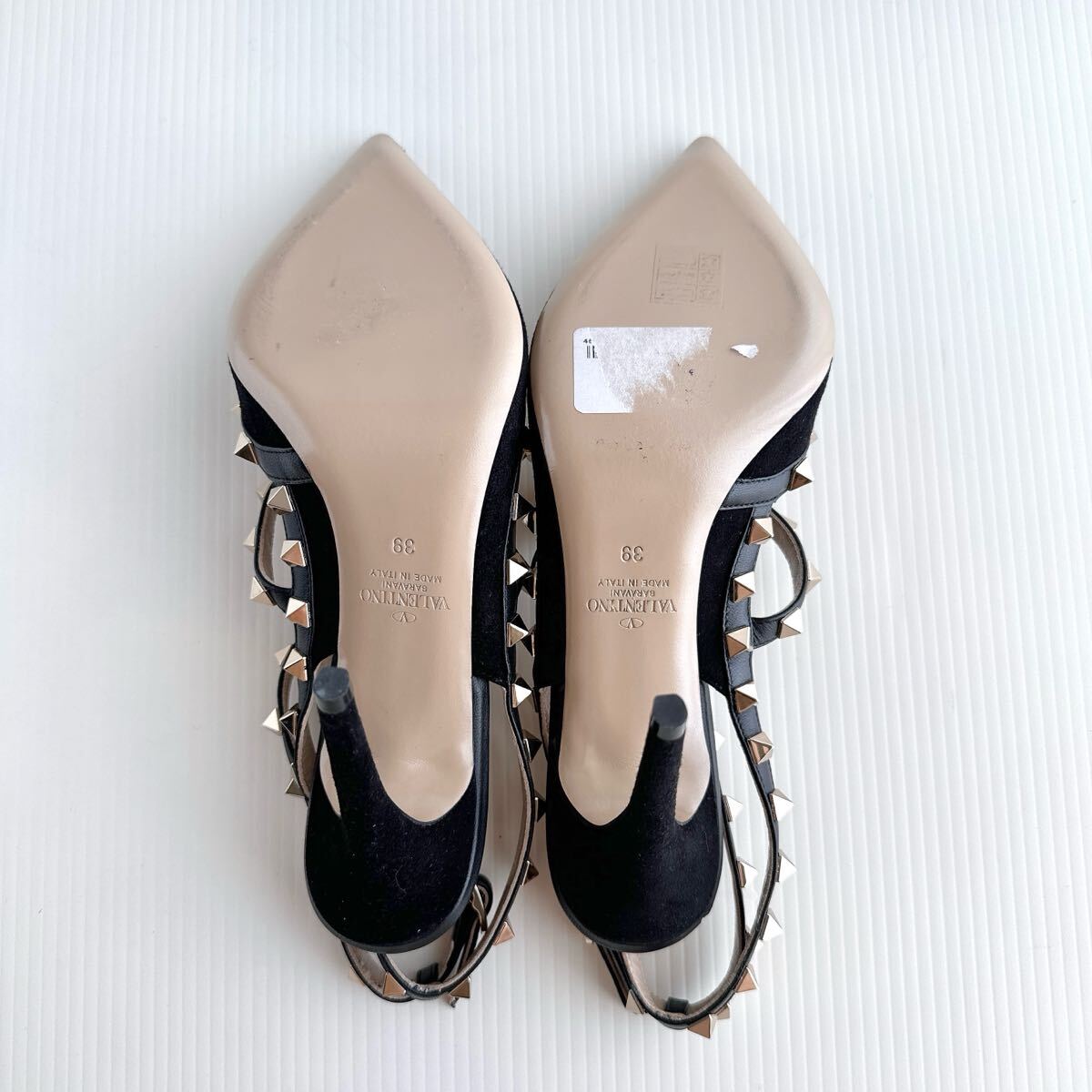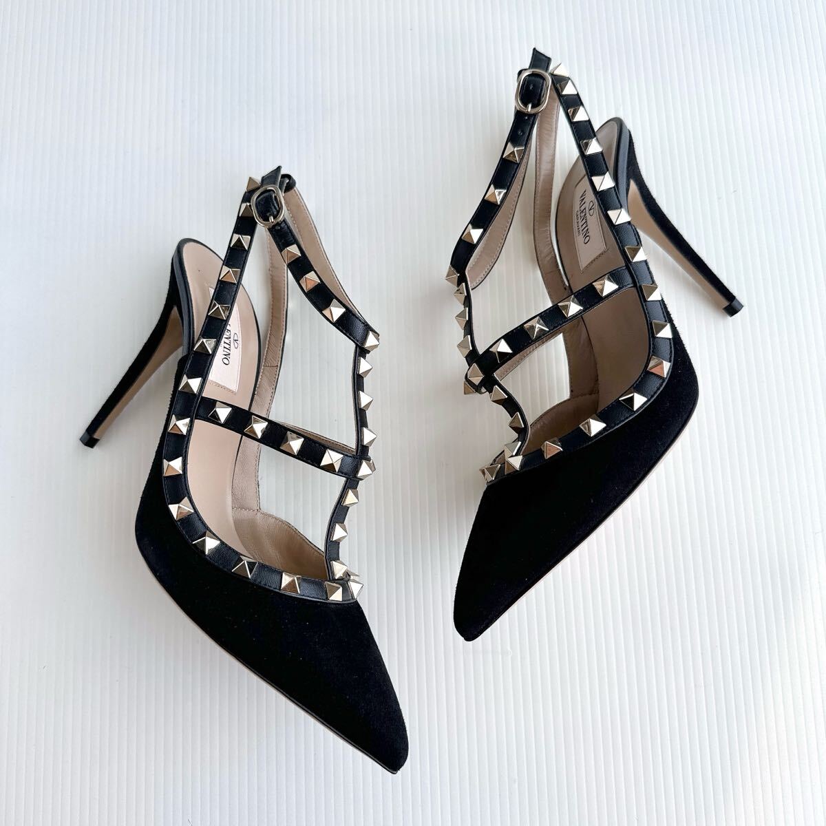 VALENTINO ヴァレンティノ ロックスタッズ ストラップ ポインテッドトゥ ハイヒール ピンヒール シューズ ミュール イタリア製 正規品 本物 新品同様