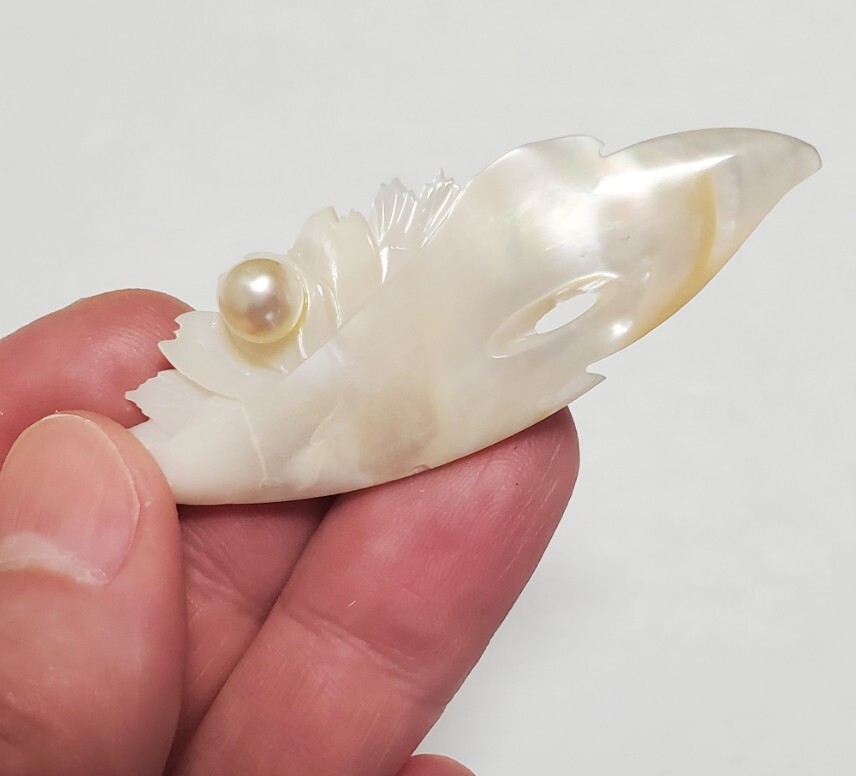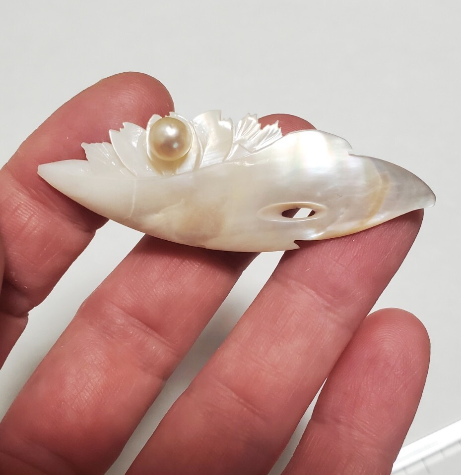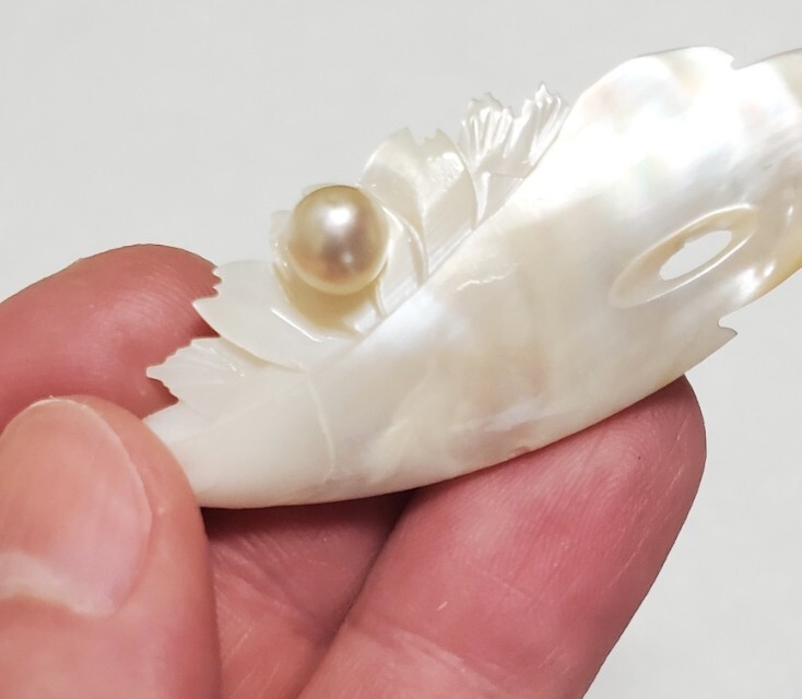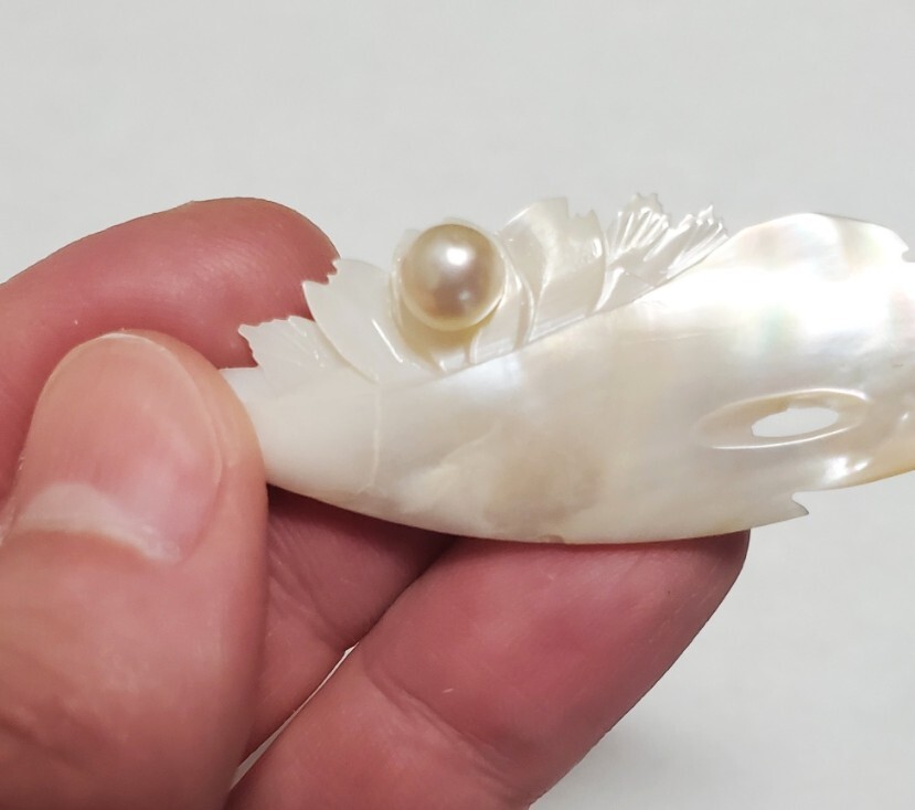 本真珠 シェル ブローチ レディース アクセサリー 6,1g 美品
