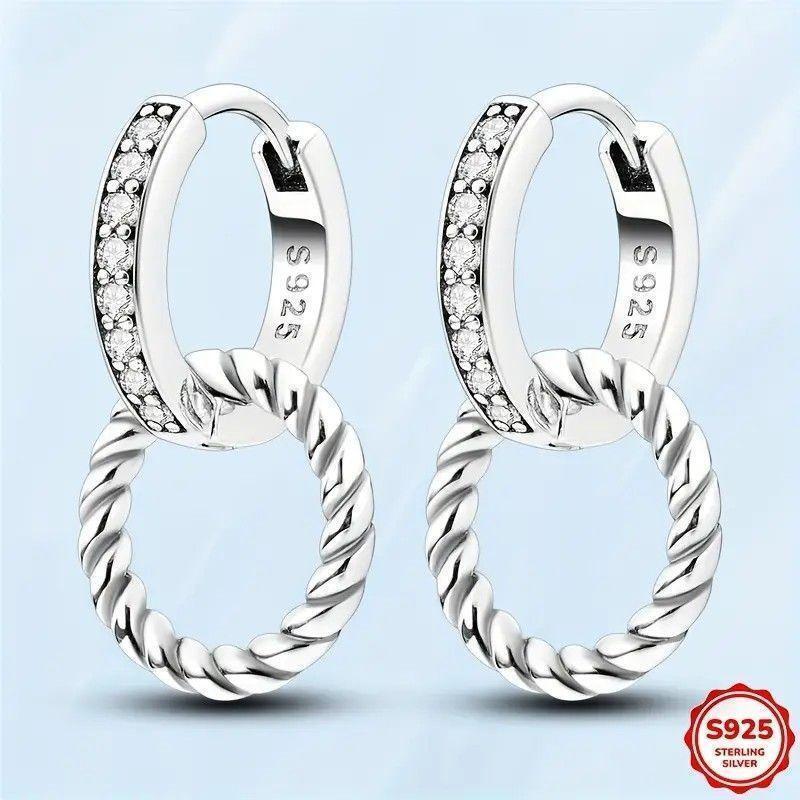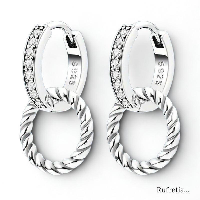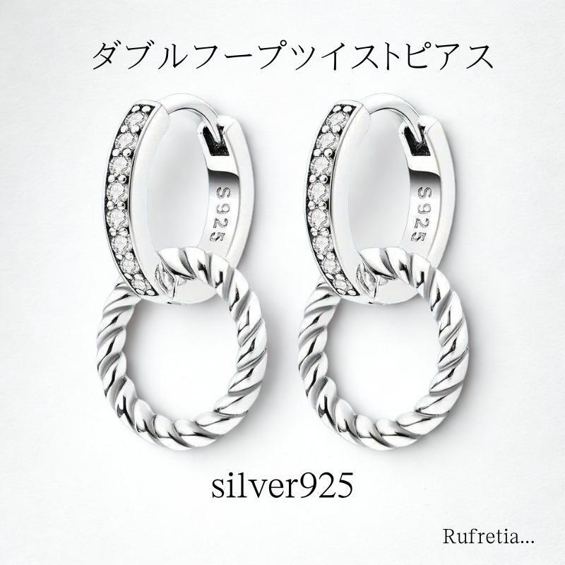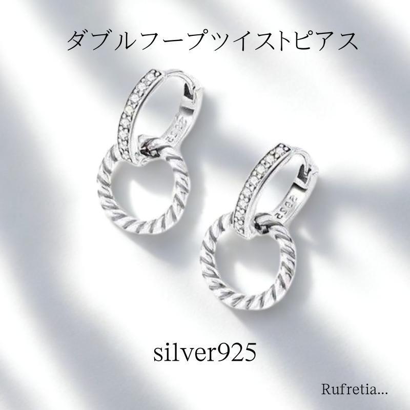 動くたびに優雅に輝く、ダブルフープ×ツイストデザインのピアス。
