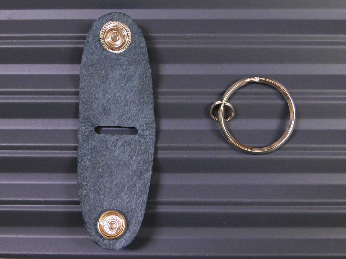小さなリングに鍵を通し、下部の穴にキーを差し込んで使います。