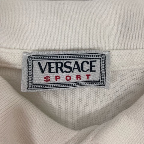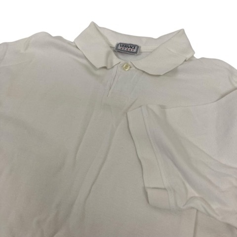 ヴェルサーチ ヴェルサーチェ VERSACE ポロシャツ 半袖 ロゴ刺繍 コットン 48 白 ホワイト メンズ