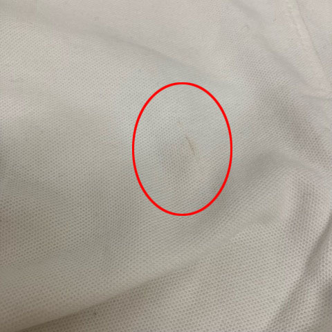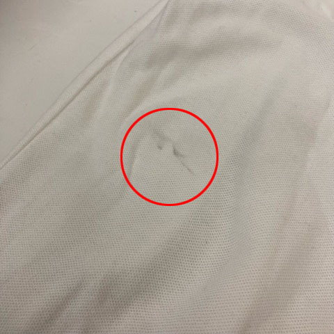 【状態】この商品には下記のようなダメージがあります。 ・前身頃胸付近全体的に黄ばみ ・後身頃左下、右上付近に2cm程の黒い汚れ 全体的に中古品としての使用感・着用感が見られるものの、普通にお使いいただける商品です。 ※全体的に中古品としての使用感と上記のようなダメージがありますが、通常使用には支障のない商品です。 掲載写真や記載内容をご確認いただき、ご理解の上ご購入ください。