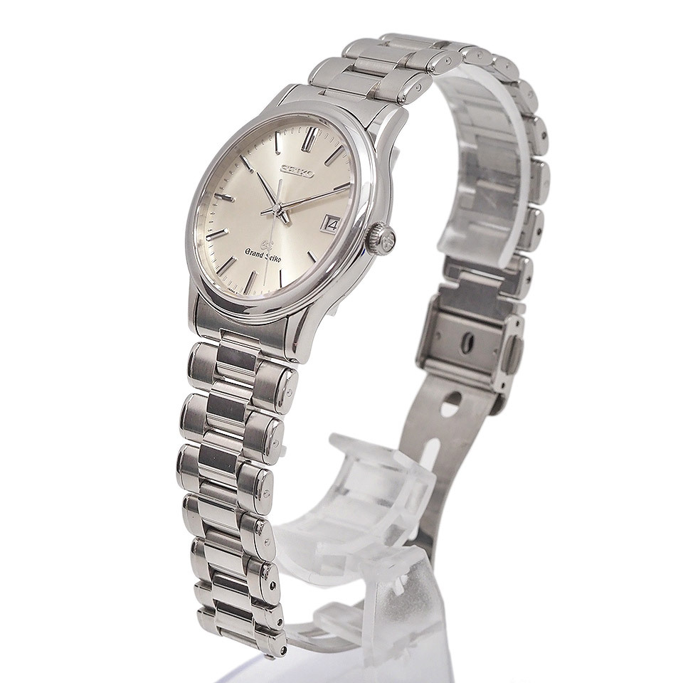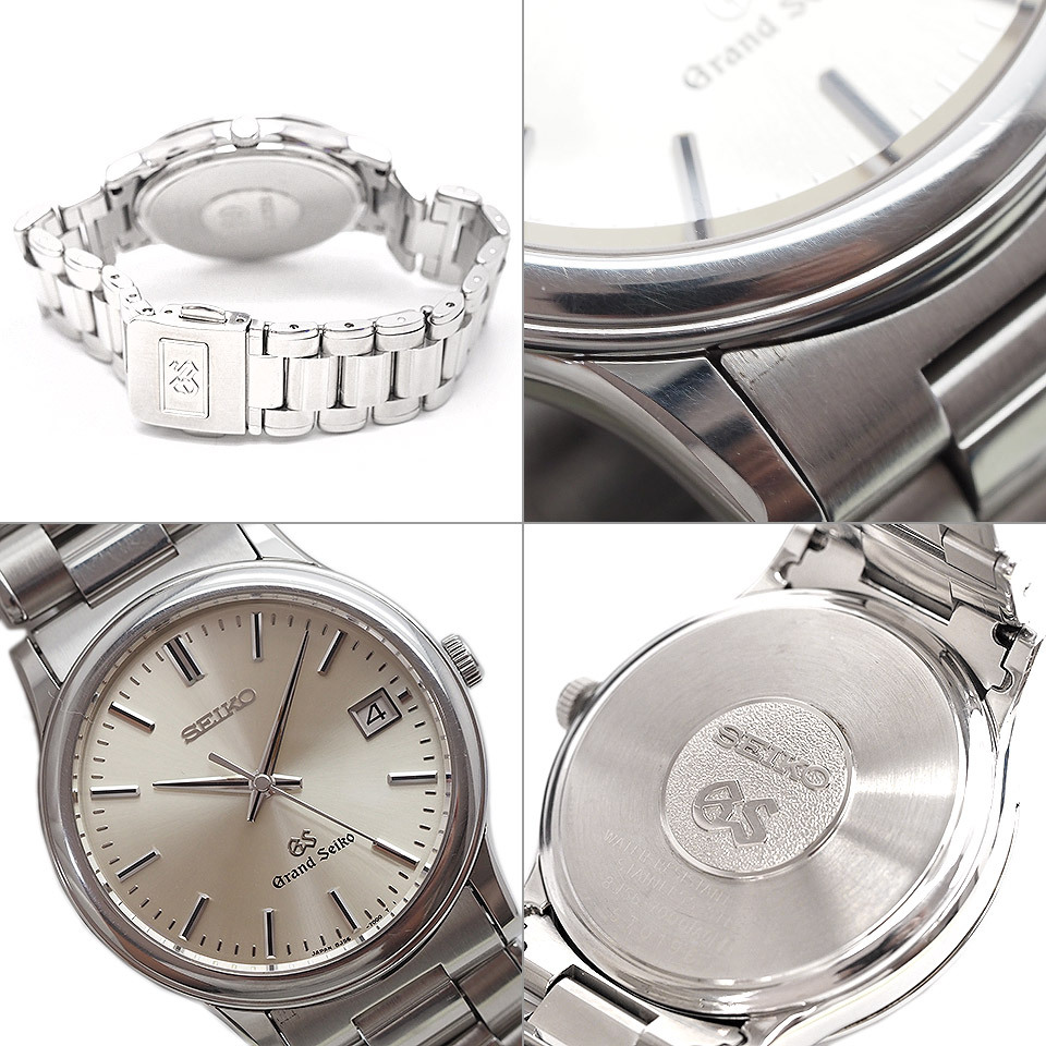 備 考 | クォーツ 日常生活防水 日付表示 グランドセイコーから小型の薄型クォーツモデルです。 ムーブメントはセイコーならではの高性能クオーツムーブメントを搭載。 ややアイボリー系の色味を持ったシルバーダイヤルは、サンレイ仕上げで放射状に光輝きます。 シンプルで飽きにくいデザインでビジネスシーンから普段使いまでご愛用いただけます。 針に変色が見られます。 ベルトにやや弛みがございます。 ケース、ベルト、バックル、裏蓋等、全体的にスレ、小キズがございます。 ※2025年5月に弊社提携時計メンテナンス業者にてオーバーホール済み。 当サイトに掲載している商品は、店頭でも展示・販売している場合がございます。 そのため撮影時にはなかったダメージや劣化が生じることがございます。 詳細、ご不明な点は事前にお問い合わせください。 [M]0610 |