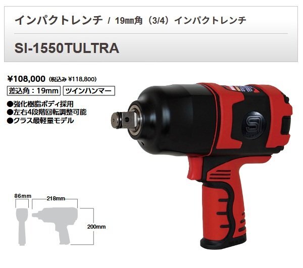 新品 信濃機販 SI-1550T ULTRA インパクトレンチ 19mm角 (3/4) ツインハンマー エアーツール |
