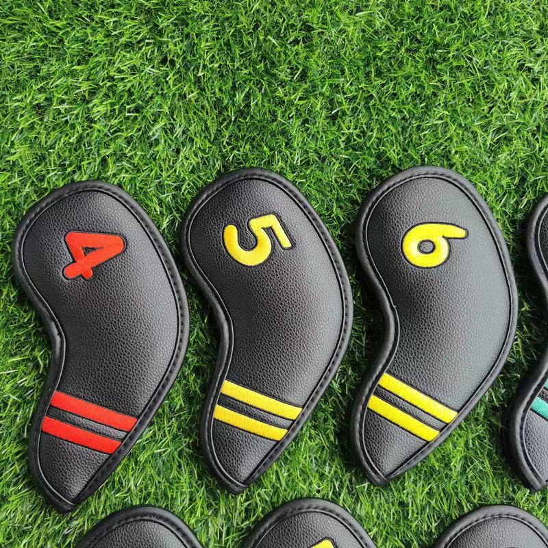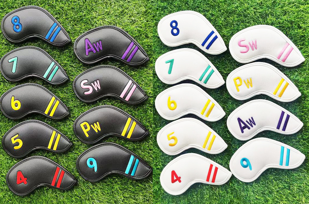 ゴルフヘッドカバー アイアンカバー 番手付 9点セット 9色ライン 4〜9 Pw Aw Sw