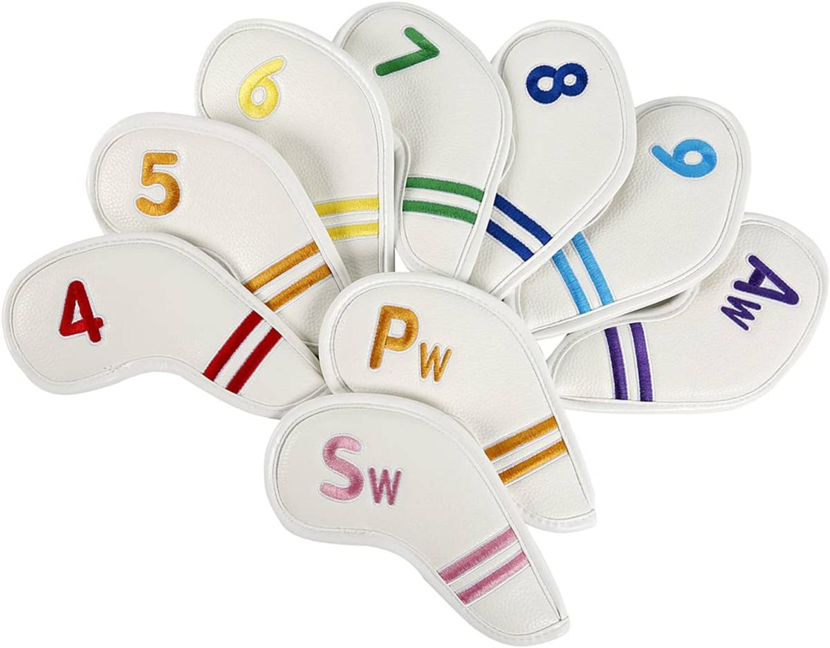 ゴルフヘッドカバー アイアンカバー 番手付 9点セット 9色ライン 4〜9 Pw Aw Sw 送料無料