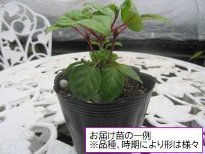 ・苗の画像はお送りする苗の目安となっております。数ある在庫の中からお送りいたしますので、枝の数や株姿、開花状況が画像と異なりますのでご注意ください。