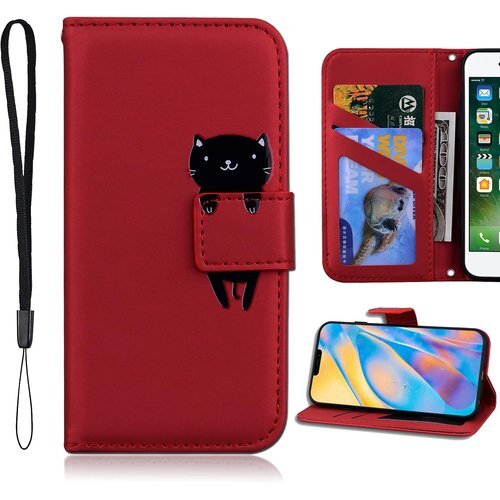 Google Pixel 4a 5G ケース 手帳型 グーグル Pixel 4a 5Gケース ピクセル 4a 5G 手帳型ケース 財布型 カバー 可愛い キャラクター 携帯ケース スマホケース 携帯カバー レザー 柔らかいTPUケース 肌触り良い革 スマホけーす ケータイケース カード収納 財布付き カードホルダー ベルトマグネット スタンド機能 猫 かわいい 動物柄 薄型 防水 ノート型 人気 おしゃれ 男女兼用 Google Pixel 4a 5G 対応 レッド 680