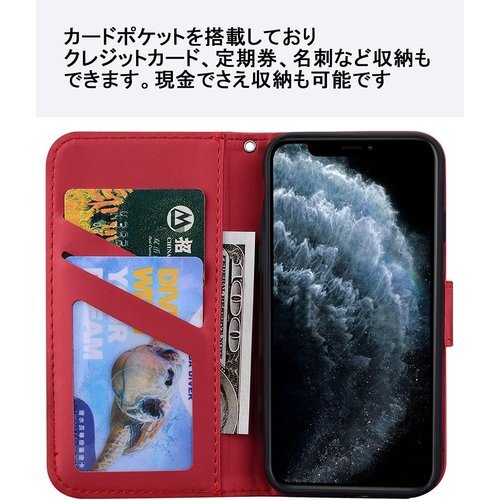 【収納性・財布型】ケースの裏側にカードポケット2つ,クレジットカード、idカード、定期券を収納可能、透明ポケットに写真、名刺入れも可能です。【横置きスタンド機能付き】動画の視聴やテレビなどを長時間行っても疲れません、新幹線、飛行機の中で暇つぶしに最適♪。