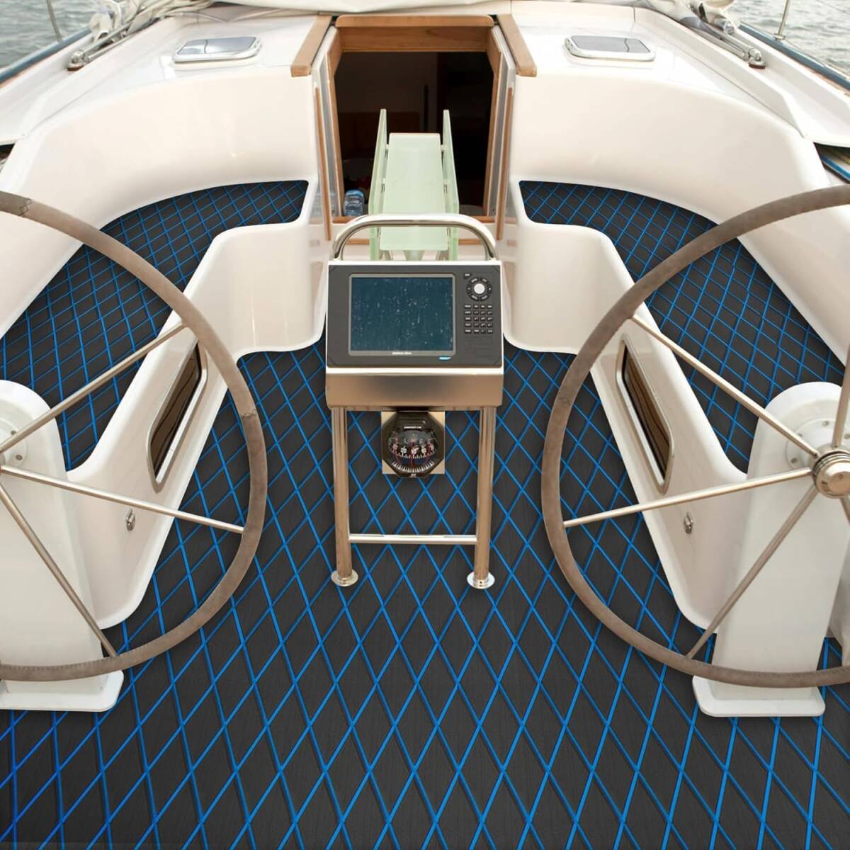 全長2400mm 幅1200mm 厚6mm ブラック&ブルーライン マリン デッキマット 船 ヨット フロアマット ボート クルーザー EVAデッキ保護シート
