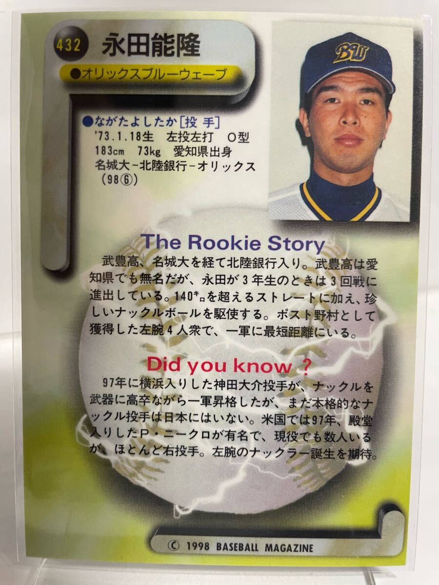 永田能隆 432 ルーキーカード RC 1998 オリックスブルーウェーブ BBM