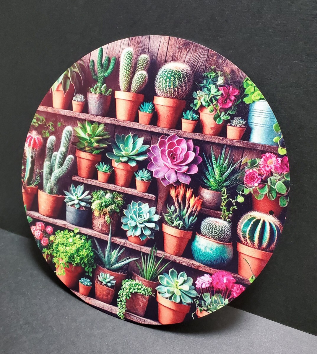 アルミニウムのメタルボードに3Dのプリント技術で描かれた花のメタルアートです。