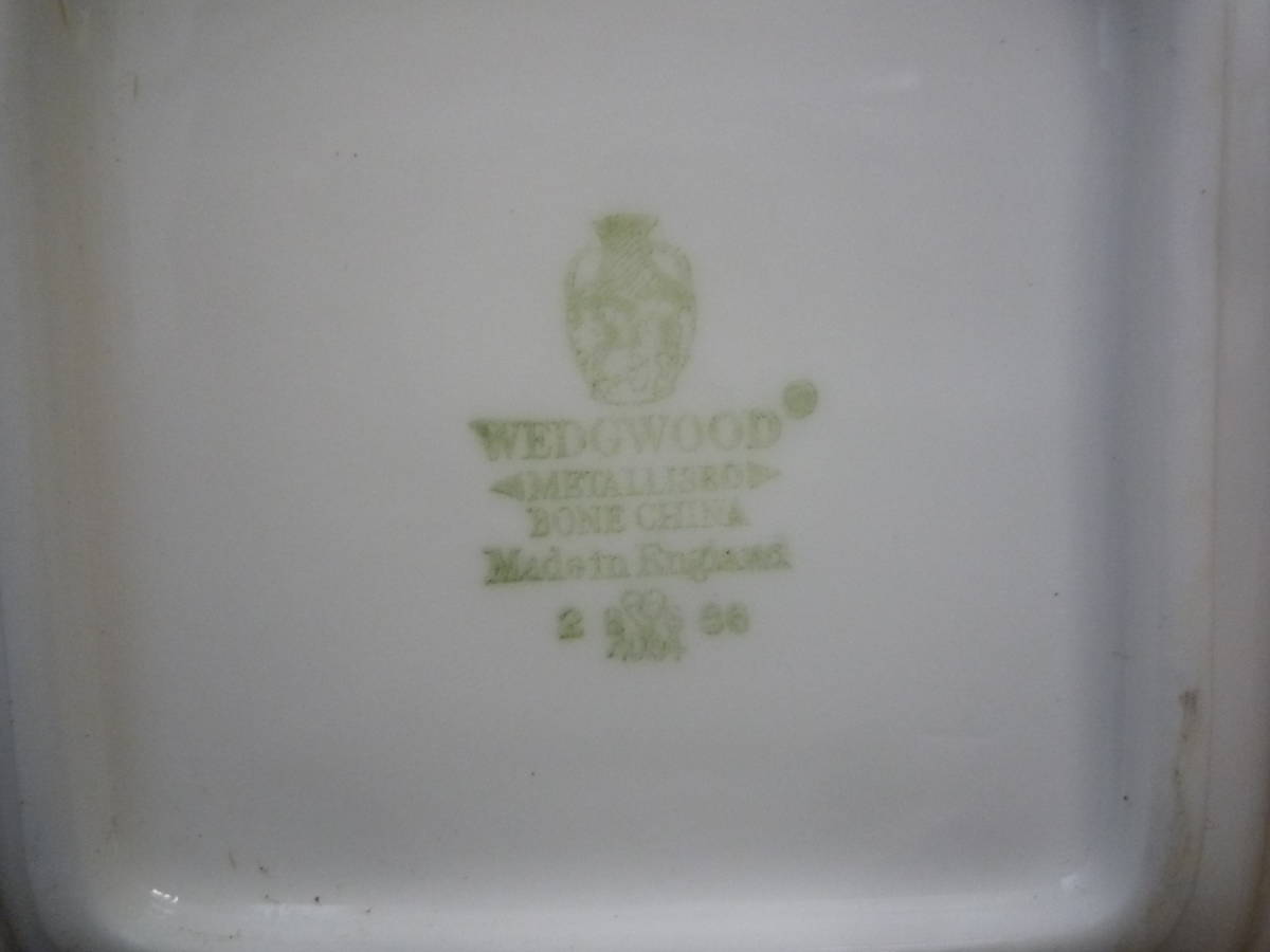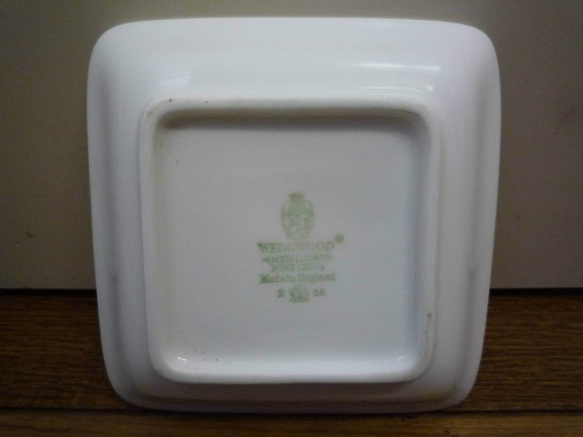 | 画像は1枚で使いまわしとなりますが同程度の物を5枚セットでお送りします。 ホテルからでてきたウェッジウッドの角皿(108㎜×108㎜)です。 ビニールに入ったままでしたが、ビニールは痛みが激しく処分しました。 皿自体は綺麗で、中古食器によく見られる光に反射すれば見える傷も見受けられません。 5枚セットでお譲りしますのでいかがでしょうか? |