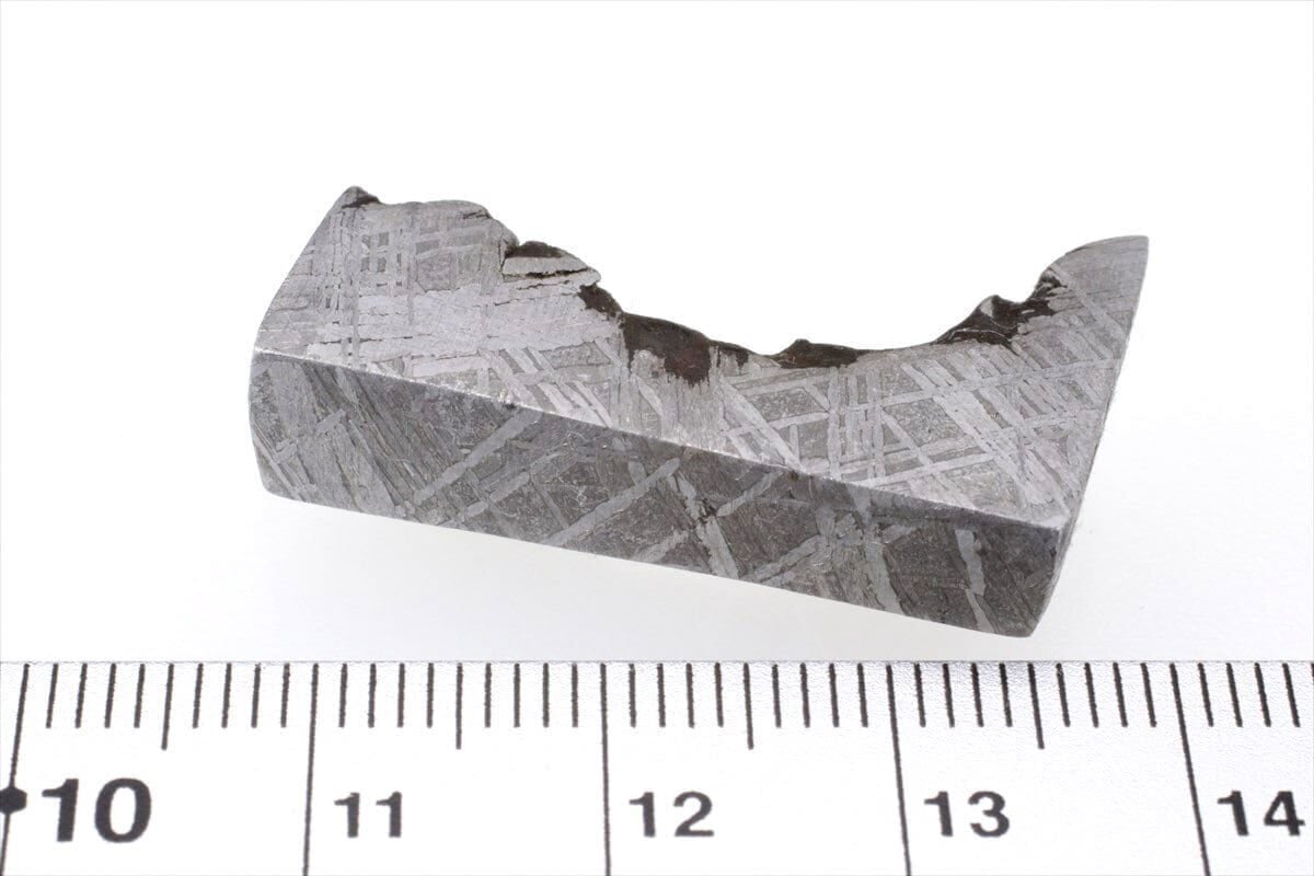 オクタヘドライトという名前はテーナイトの結晶格子の角にカマサイトが成長し八面体(オクタへドロン)構造になることに由来しており、酸処理を施すとカマサイトよりも酸に溶けにくいテーナイトが浮かび上がり特徴的な模様のウィドマンシュテッテン構造が現れます。ウィドマンシュテッテンとは構造を一番初めに論文として発表したカウント・アロイス・フォン・ウィドマンシュテッテン氏からきています。