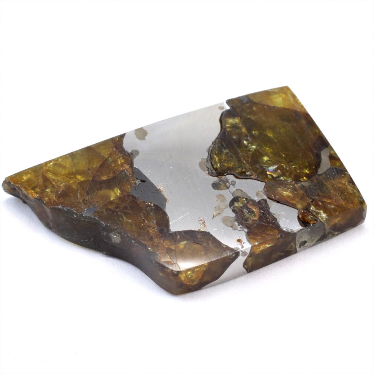 丸みのある粗粒状のカンラン石とその間を埋める鉄-ニッケル合金から出来ておりパラサイトという名前はシベリアの山中にあるクラスノヤルスク付近で発見された隕石を研究したドイツの博物学者ペーター・ジーモン・パラス氏にちなんで1772年に名付けられました。パラサイトの鉄-ニッケル部分はオクタへドライトなのでエッチングによりウィドマンシュテッテン構造が現れトロイライトやシュライバーサイトが含まれていることが多くあります。