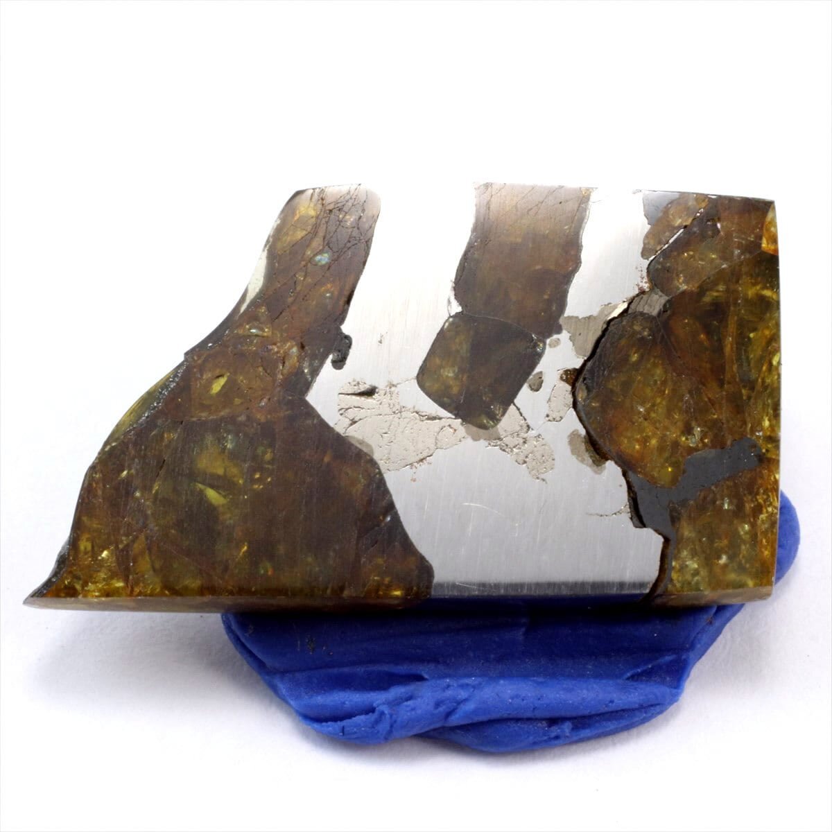 総質量は920kgとされており1822年にチリ北部のアタカマ砂漠で発見されました。kg単位の塊が多くのメテオライトハンターに発見され数g単位の小さな破片も数多く発見されており、イミラック隕石の標本はオリビンのきめが細かく美しいことから隕石コレクターから高く評価されています。近年ではメテオライトハンターが大型の機械を導入し落下地域の捜索を成功させましたが、世界中のコレクターに人気があるため取引価格が上昇しています。