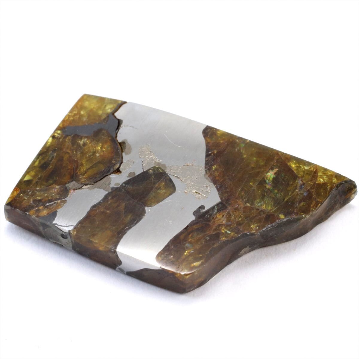丸みのある粗粒状のカンラン石とその間を埋める鉄-ニッケル合金から出来ておりパラサイトという名前はシベリアの山中にあるクラスノヤルスク付近で発見された隕石を研究したドイツの博物学者ペーター・ジーモン・パラス氏にちなんで1772年に名付けられました。パラサイトの鉄-ニッケル部分はオクタへドライトなのでエッチングによりウィドマンシュテッテン構造が現れトロイライトやシュライバーサイトが含まれていることが多くあります。