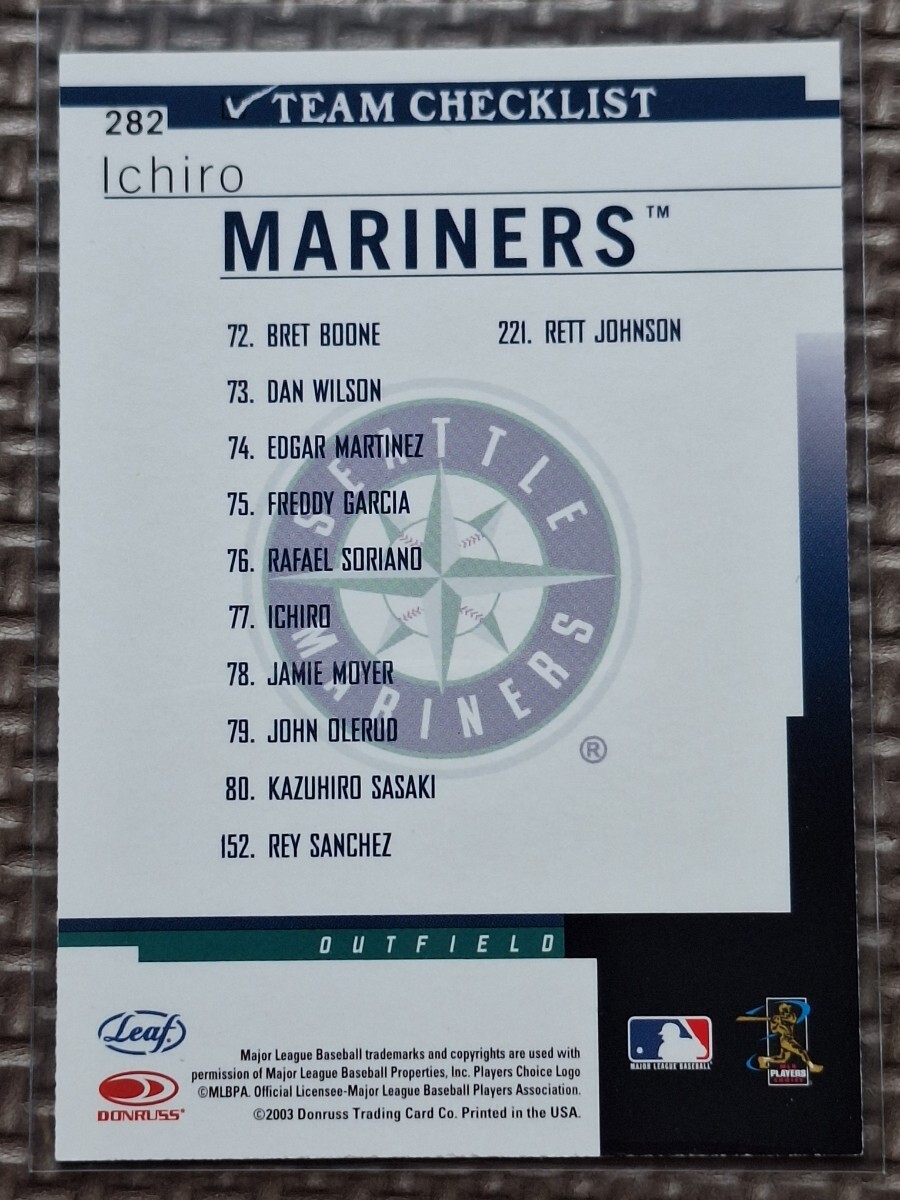 2003 Donruss Leaf #282 ICHIRO SUZUKI Team Checklist Seattle Mariners Orix BlueWave