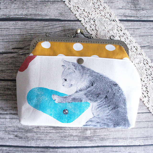 内布も猫生地を使った、猫好きさんにオススメのがま口です。
