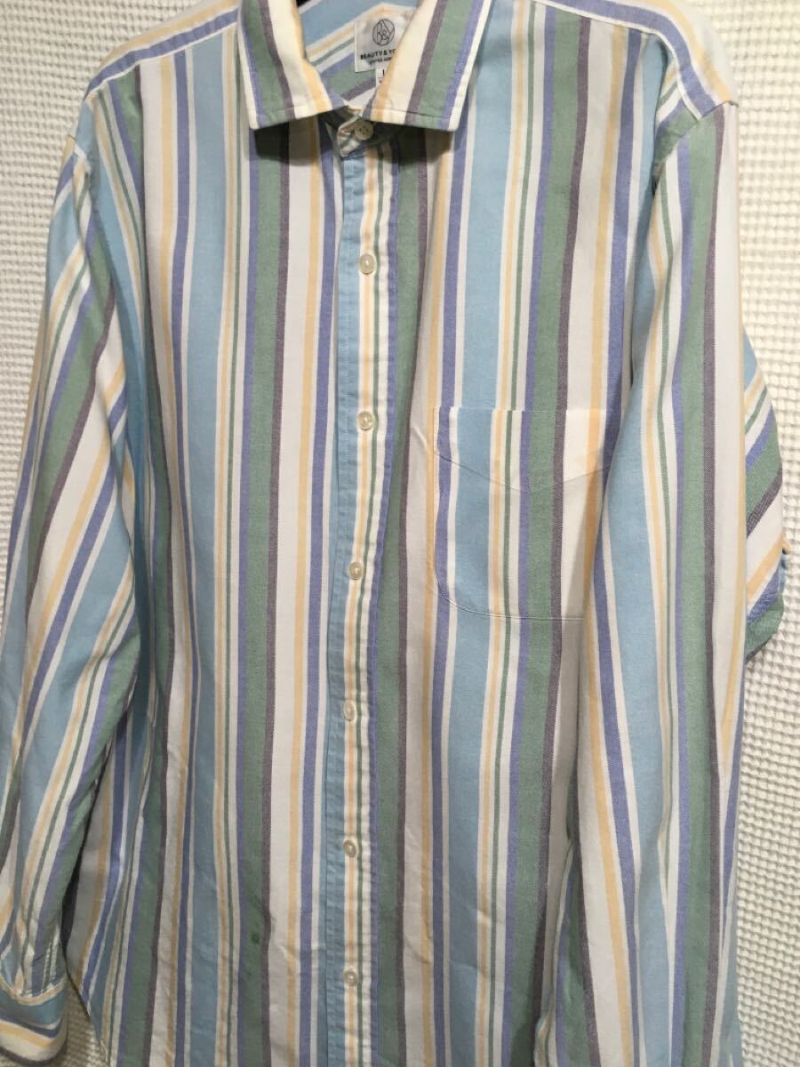 畳んで引き出しに入れてましたが畳み襟周りうっすら黄ばみが有ります、汗染みでは無いので洗って頂けると綺麗になると思います。